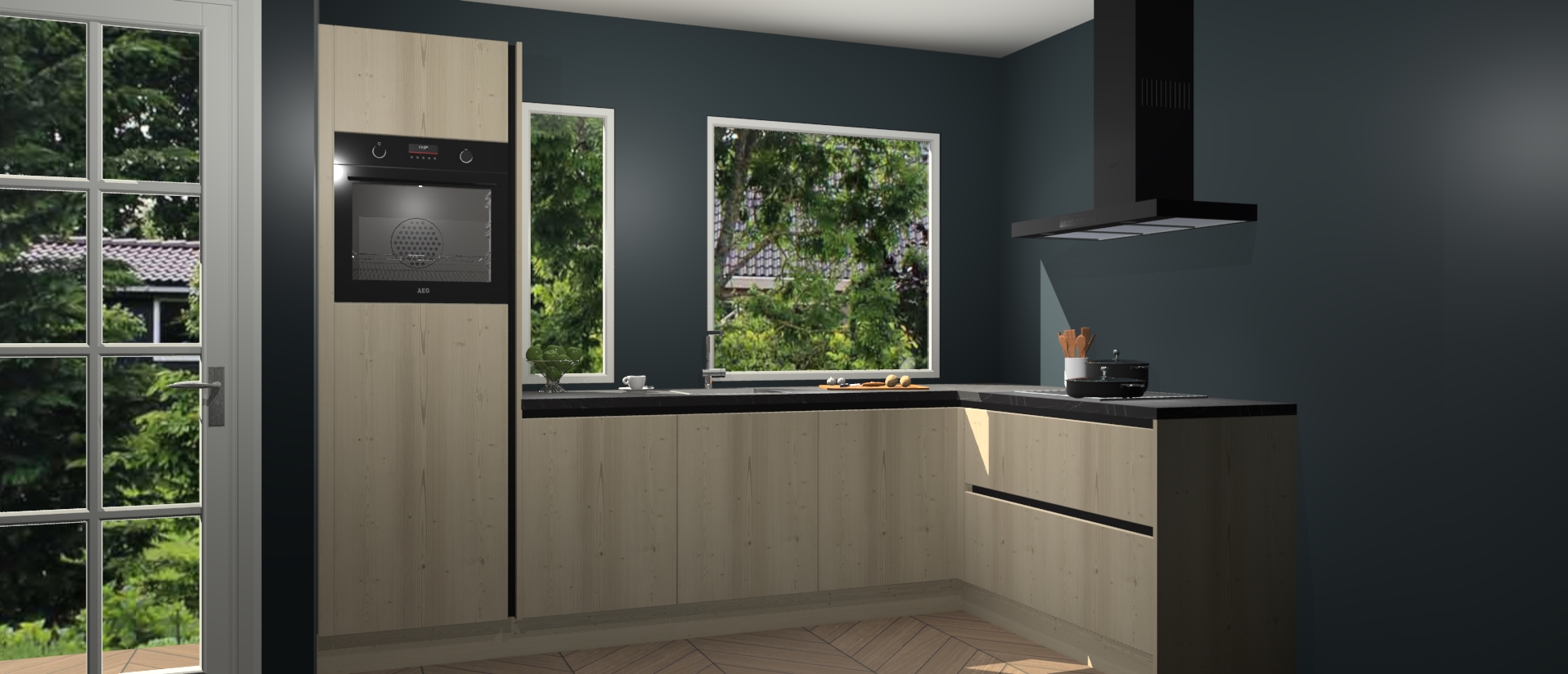 Deze complete keuken wordt geleverd met 5 inbouwapparaten: een oven, inductiekookplaat, afzuigkap, vaatwasser en koelkast. De toestellen kunnen na bestelling ook gemakkelijk worden opgewaardeerd naar AEG. Bovendien is elke deur in deze keuken voorzien van handige softclose technologie voor eenvoudig gebruik! Als een leuke toevoeging zit in deze keuken ook een carrousel, zo hoef je niet meer de hoek in duiken om iets te pakken.