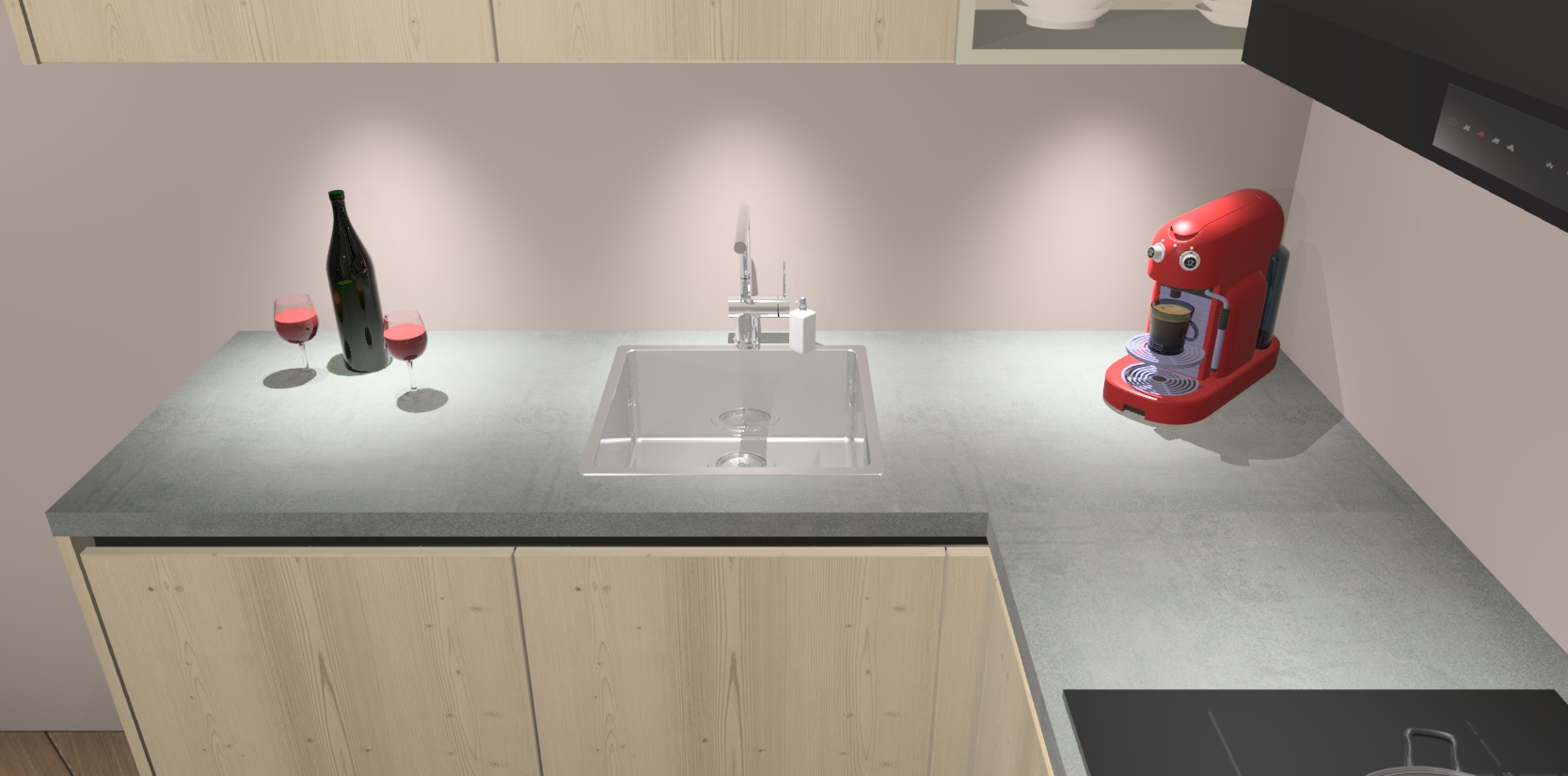 - Bij een hoekwerkblad zijn de hoeken in gevreesd en op maat gemaakt