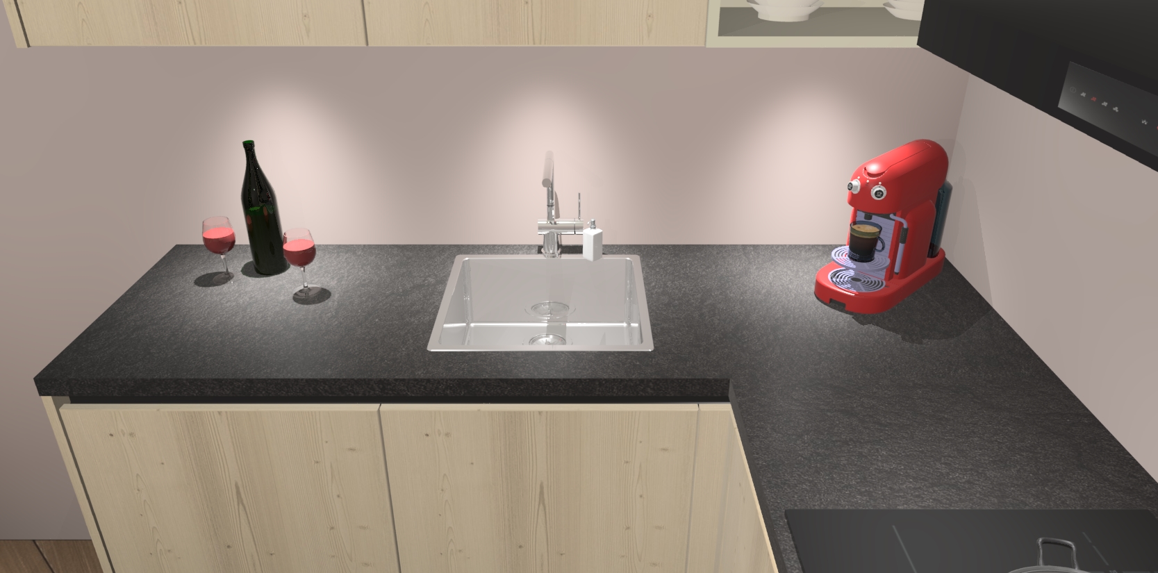 - Bij een hoekwerkblad zijn de hoeken in gevreesd en op maat gemaakt