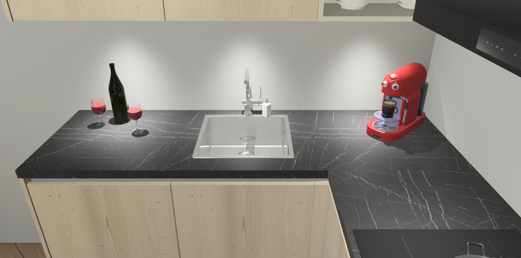 - Bij een hoekwerkblad zijn de hoeken in gevreesd en op maat gemaakt