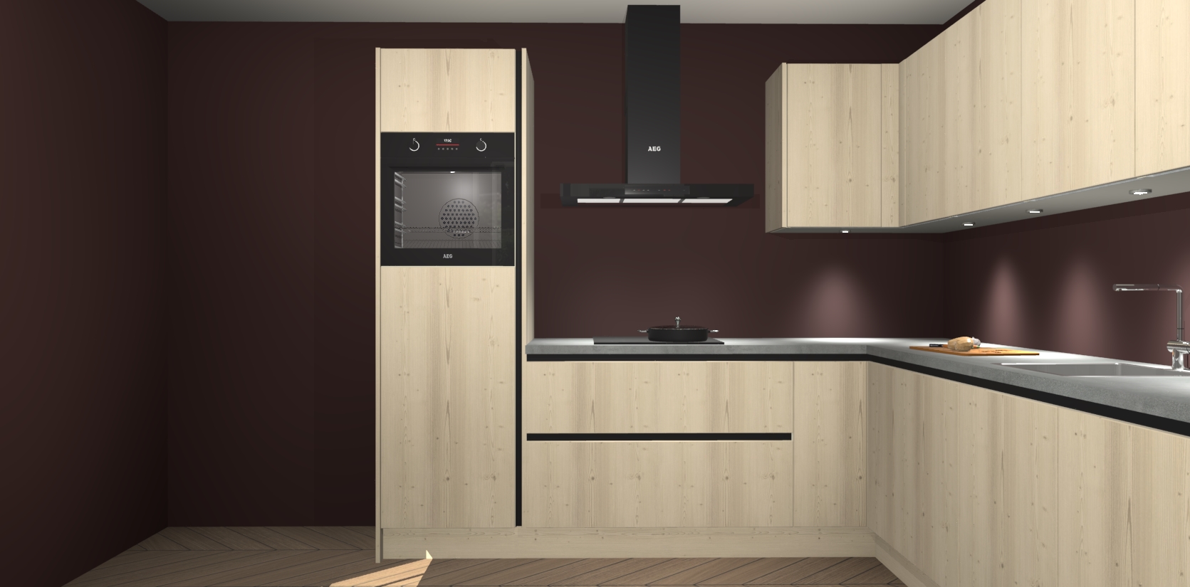 De Vuren greeploze keuken Debar is uitgerust met vijf inbouwapparaten die elke kooktaak handig en efficiënt maken. Een oven, inductiekookplaat, afzuigkap, vaatwasser en koelkast zijn standaard, maar kunnen na bestelling eenvoudig worden geupgrade naar AEG. Profiteer vervolgens van de softclose deuren voor snelle toegang en geruisloze toegang.