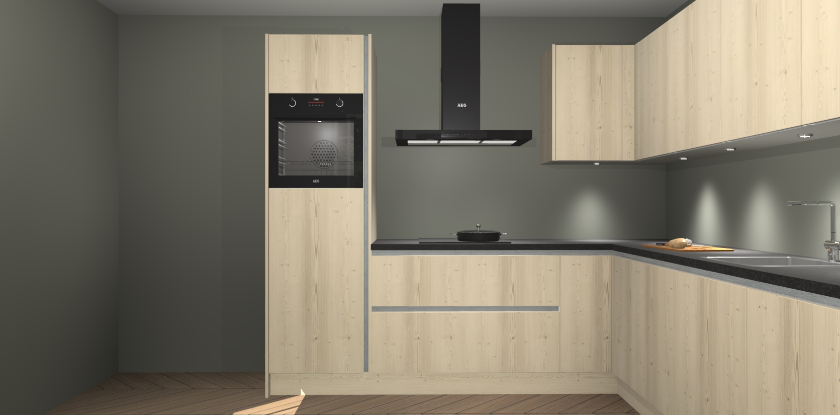De Vuren greeploze keuken Debar is uitgerust met vijf inbouwapparaten die elke kooktaak handig en efficiënt maken. Een oven, inductiekookplaat, afzuigkap, vaatwasser en koelkast zijn standaard, maar kunnen na bestelling eenvoudig worden geupgrade naar AEG. Profiteer vervolgens van de softclose deuren voor snelle toegang en geruisloze toegang.