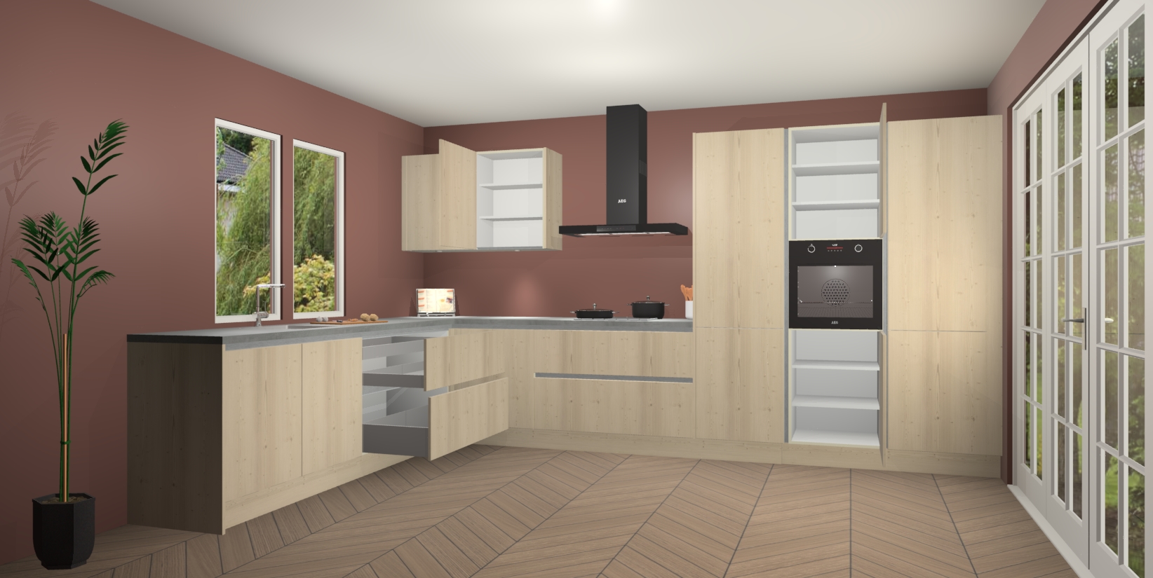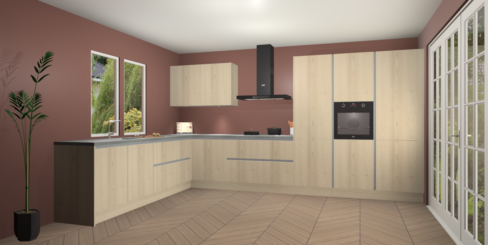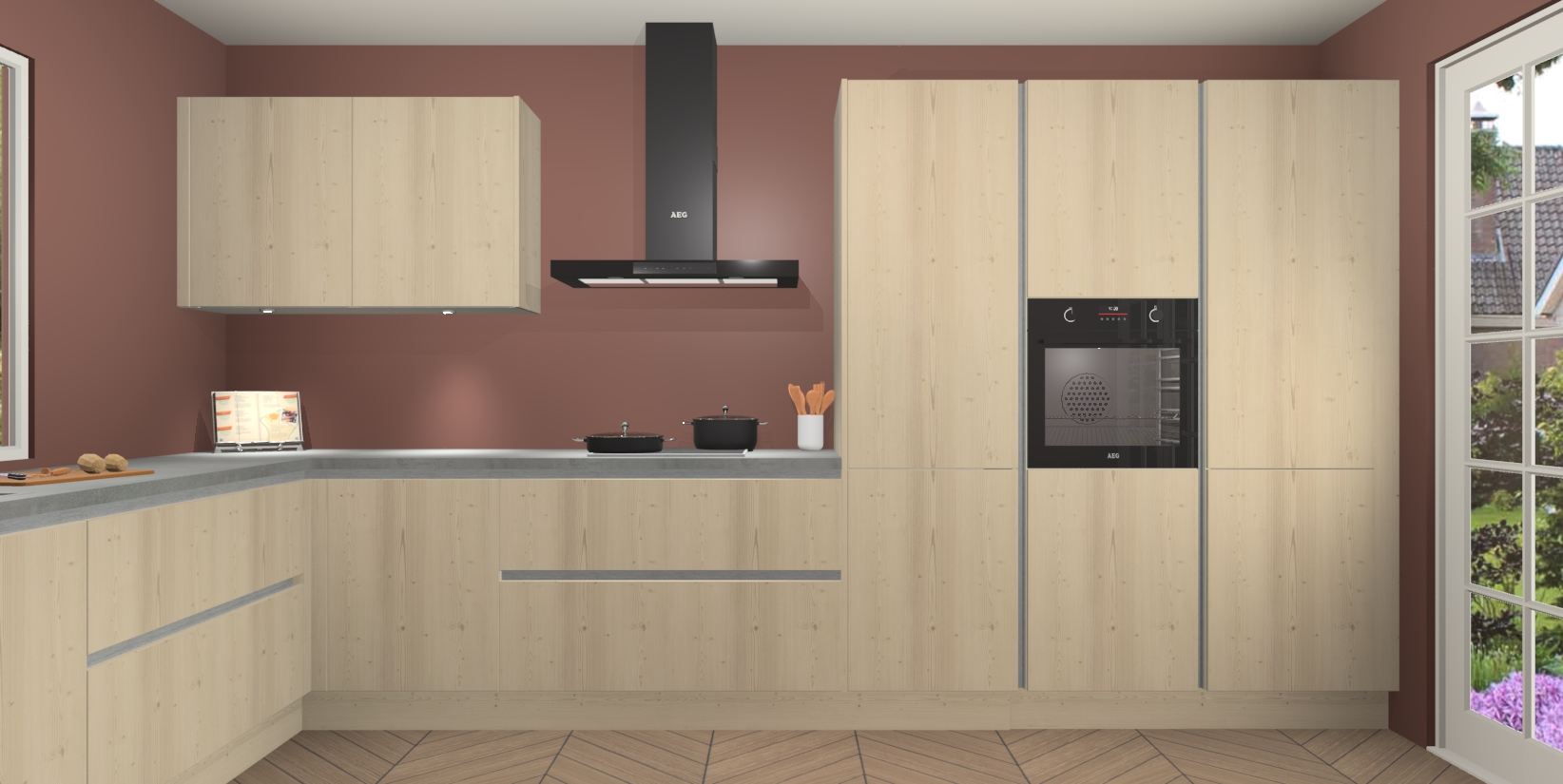 Kom dichtbij de perfecte keuken van uw dromen met de Vuren greeploze keuken Debrecen. Met een prachtige houtlook en eigentijds ontwerp, straalt deze keuken warmte en sfeer uit. Of u nu liefhebber bent van traditionele of moderne stijlen, er is genoeg ruimte om aan al uw behoeften te voldoen.