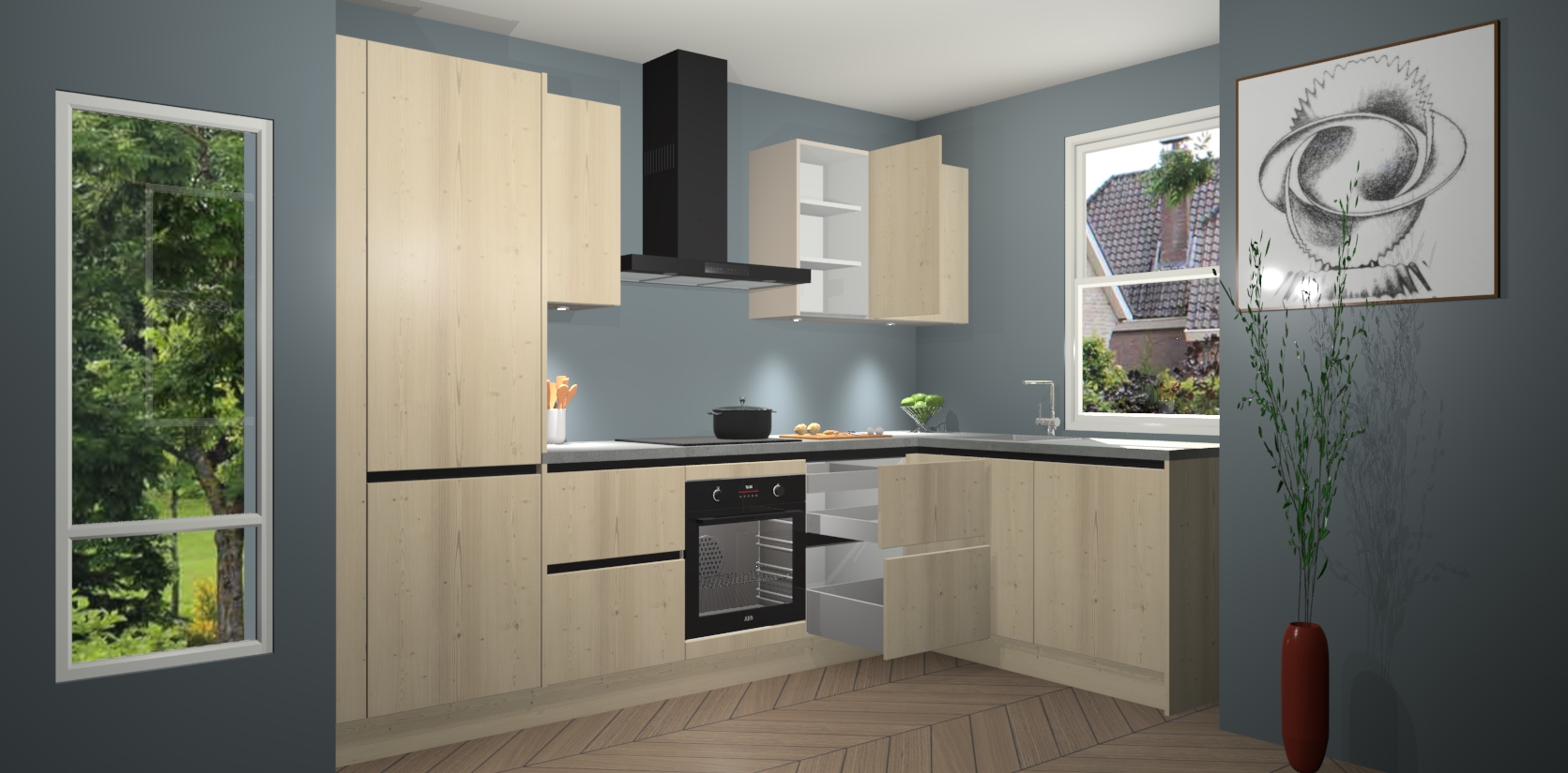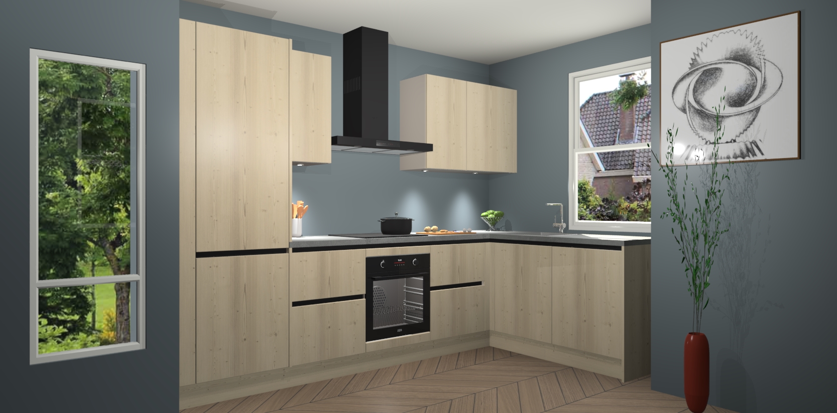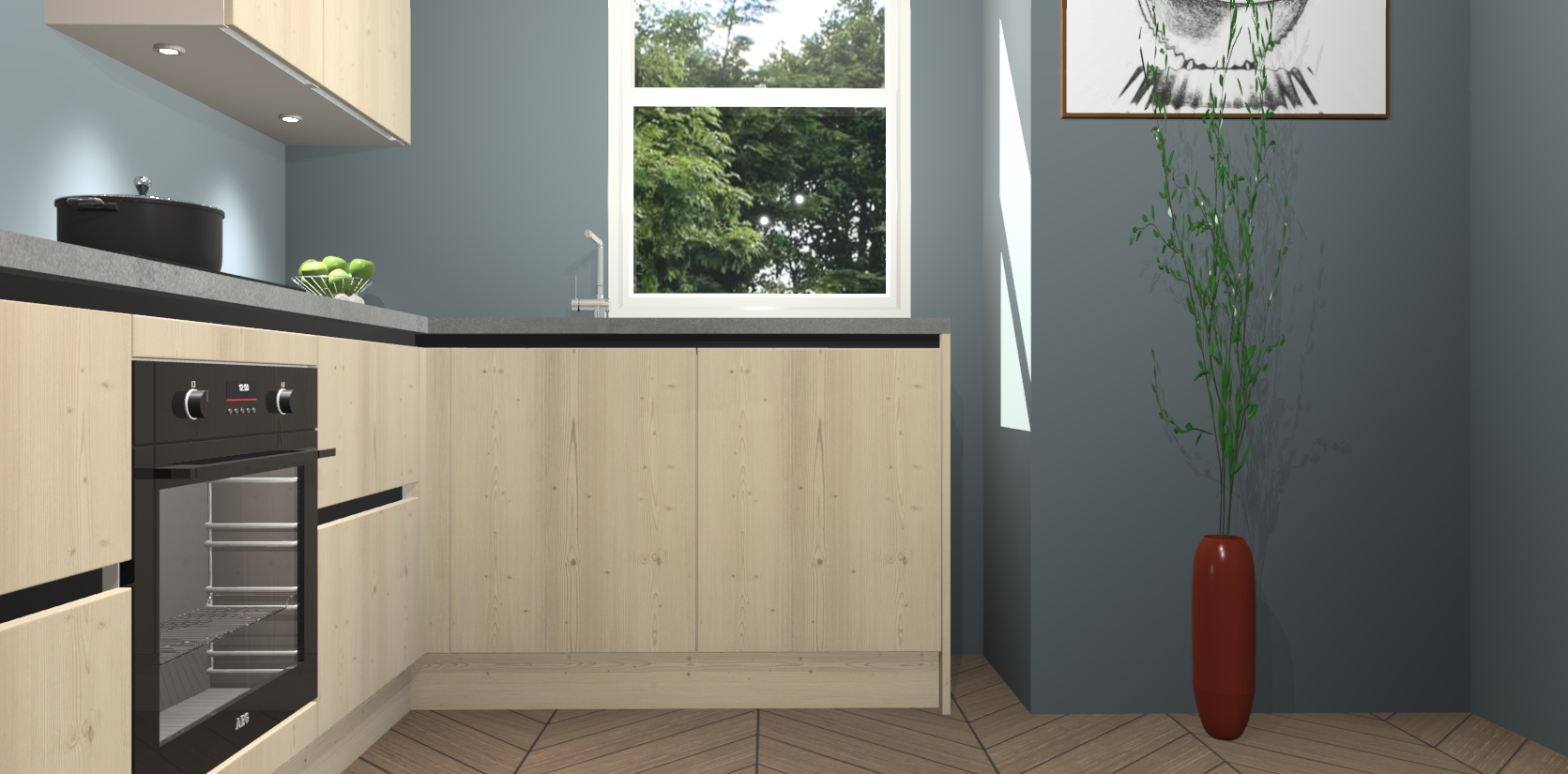 De Vuren greeploze keuken Geneve is uitgerust met 5 inbouwapparaten - een oven, inductiekookplaat, afzuigkap, vaatwasser en koelkast - voor al uw kook- en bewaarbehoeftes. U kunt deze apparaten desgewenst eenvoudig upgraden naar AEG of de oven omruilen voor een combimagnetron na het plaatsen van uw bestelling. En met de soft close deuren, voldoende opbergruimte en kasten die voorgemonteerd worden geleverd, bent u in een mum van tijd klaar om heerlijke maaltijden te bereiden!
