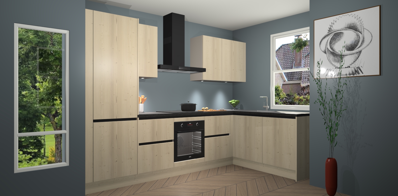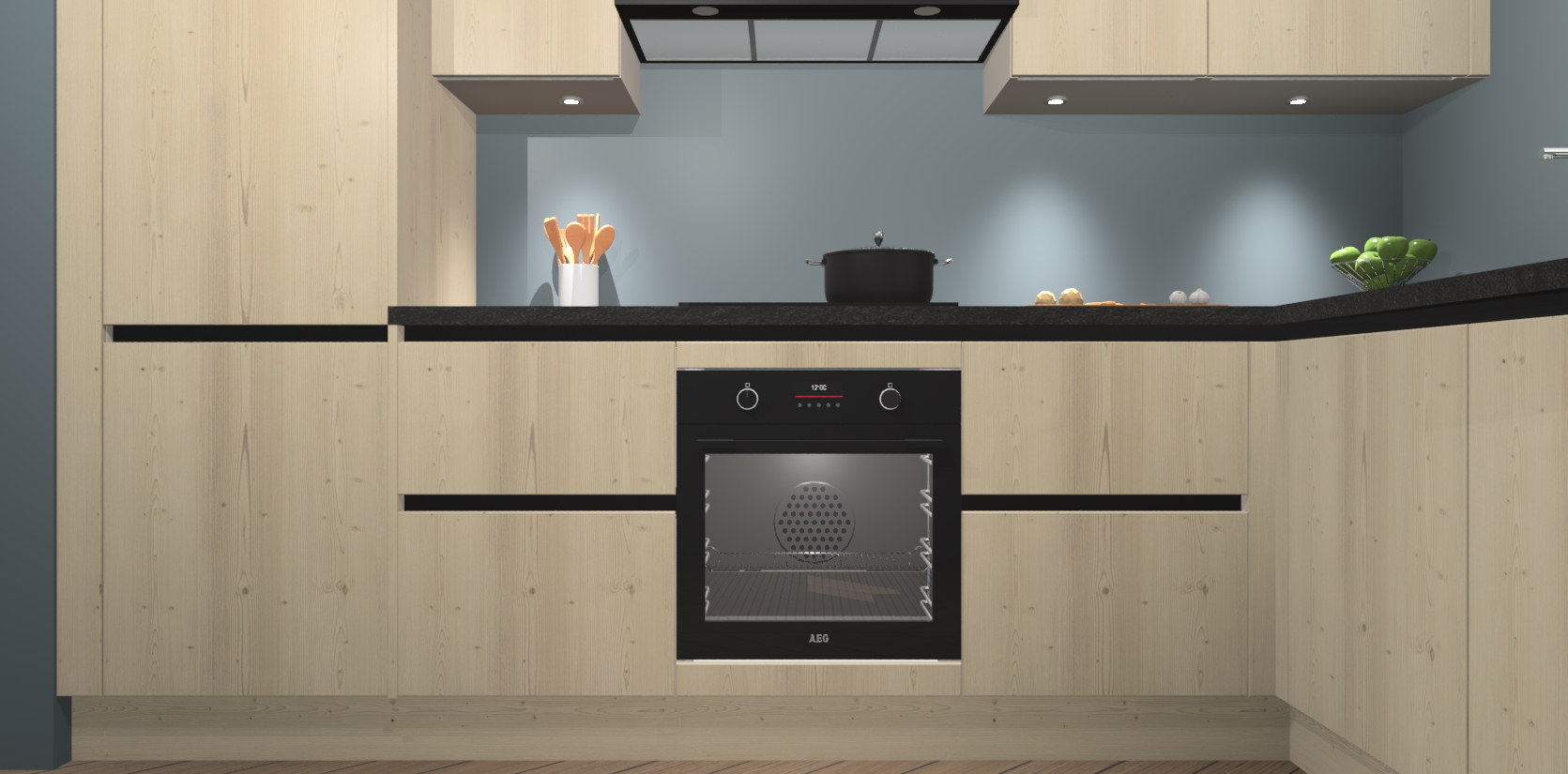 De Vuren greeploze keuken Geneve is uitgerust met 5 inbouwapparaten - een oven, inductiekookplaat, afzuigkap, vaatwasser en koelkast - voor al uw kook- en bewaarbehoeftes. U kunt deze apparaten desgewenst eenvoudig upgraden naar AEG of de oven omruilen voor een combimagnetron na het plaatsen van uw bestelling. En met de soft close deuren, voldoende opbergruimte en kasten die voorgemonteerd worden geleverd, bent u in een mum van tijd klaar om heerlijke maaltijden te bereiden!