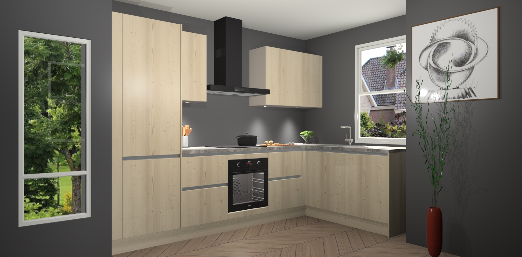 De Vuren greeploze keuken Geneve is precies wat u nodig heeft als u op zoek bent naar modern design, versmolten met tijdloze schoonheid. De strakke afwerking voegt klasse toe terwijl het toch een uitnodigende sfeer behoudt; zeker om zowel gasten als uzelf te inspireren om in stijl te gaan koken! En nog beter, het zal uw budget niet breken - dus waarom wachten? Met de Vuren greeploze keuken Geneve bent u verzekerd van kwaliteit zonder in te leveren op de prijs!