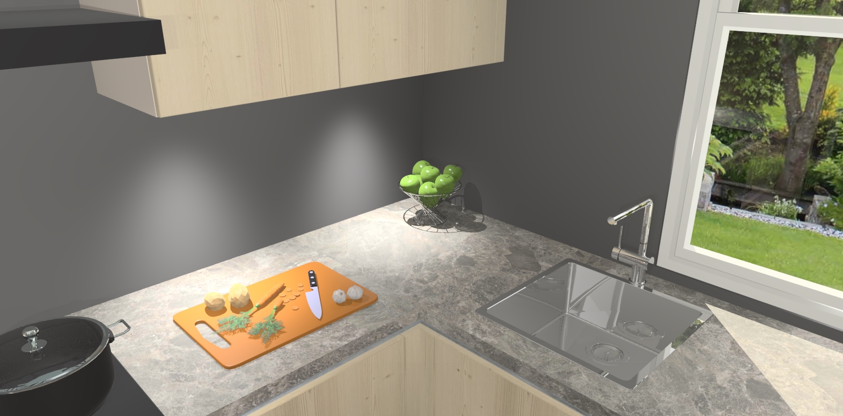 • Bij een hoekwerkblad zijn de hoeken in gevreesd en op maat gemaakt