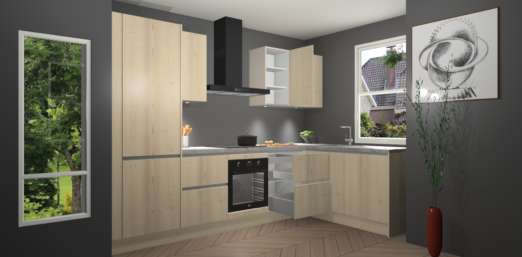 De Vuren greeploze keuken Geneve is precies wat u nodig heeft als u op zoek bent naar modern design, versmolten met tijdloze schoonheid. De strakke afwerking voegt klasse toe terwijl het toch een uitnodigende sfeer behoudt; zeker om zowel gasten als uzelf te inspireren om in stijl te gaan koken! En nog beter, het zal uw budget niet breken - dus waarom wachten? Met de Vuren greeploze keuken Geneve bent u verzekerd van kwaliteit zonder in te leveren op de prijs!