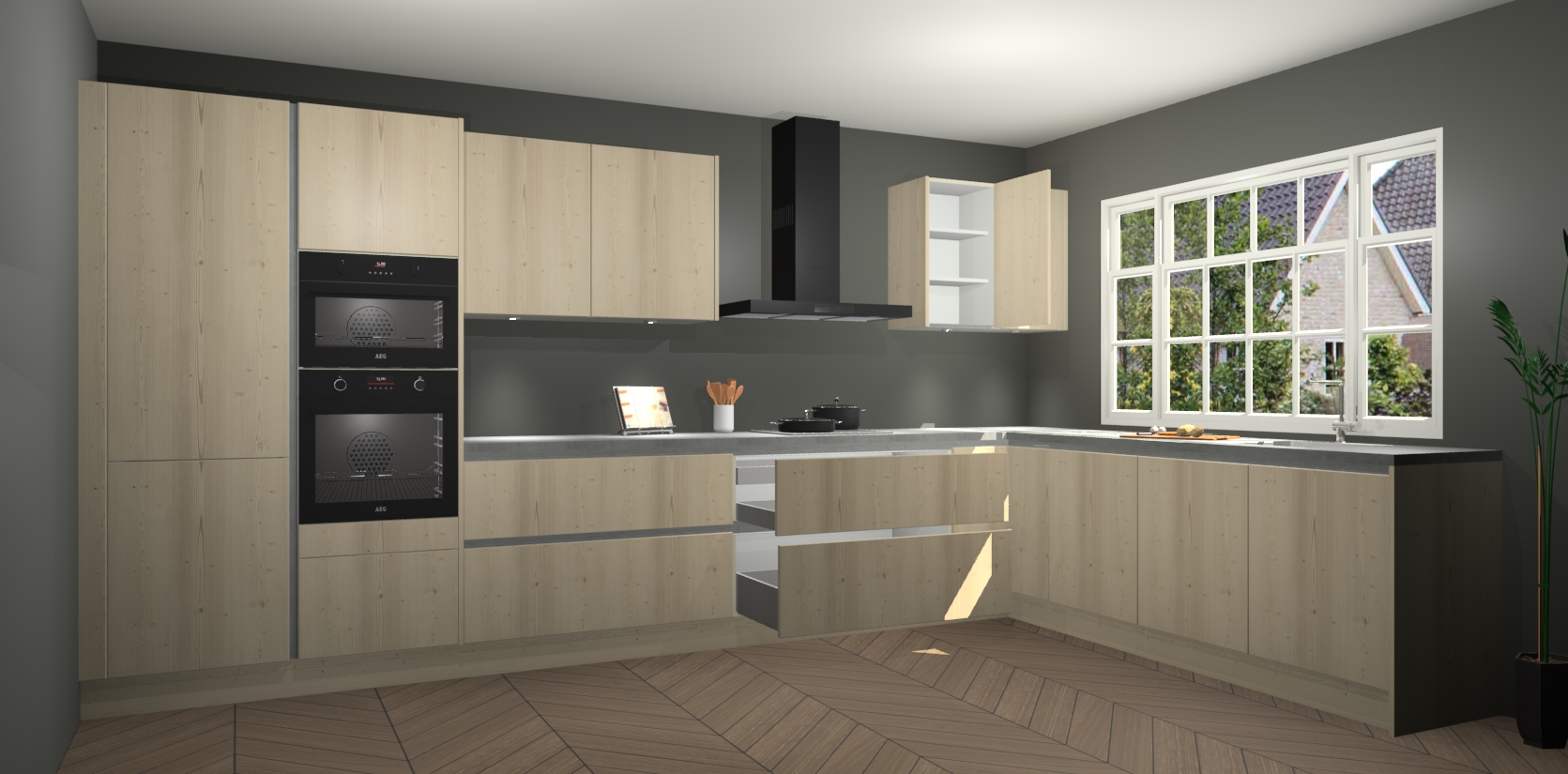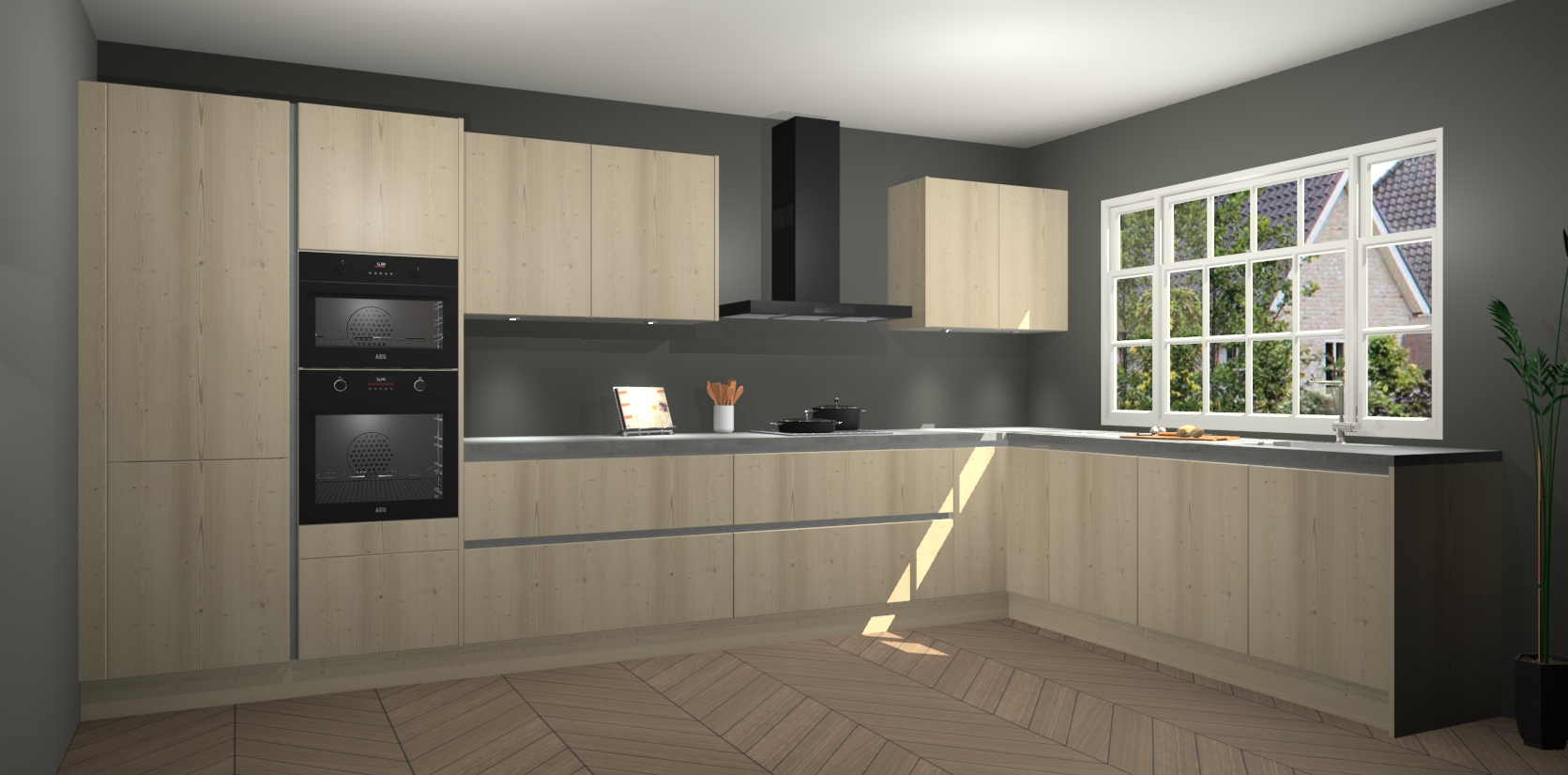 Kom dichtbij de perfecte keuken van uw dromen met de vuren greeploze keuken Graz. Met een prachtige houtlook en eigentijds ontwerp, straalt deze keuken warmte en sfeer uit. Of u nu liefhebber bent van traditionele of moderne stijlen, er is genoeg ruimte om aan al uw behoeften te voldoen.