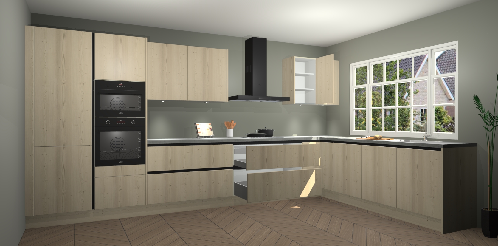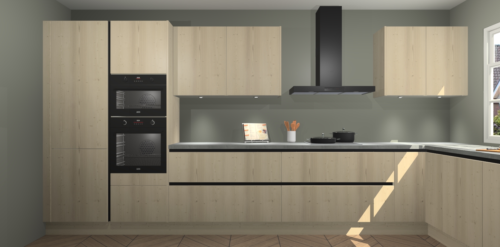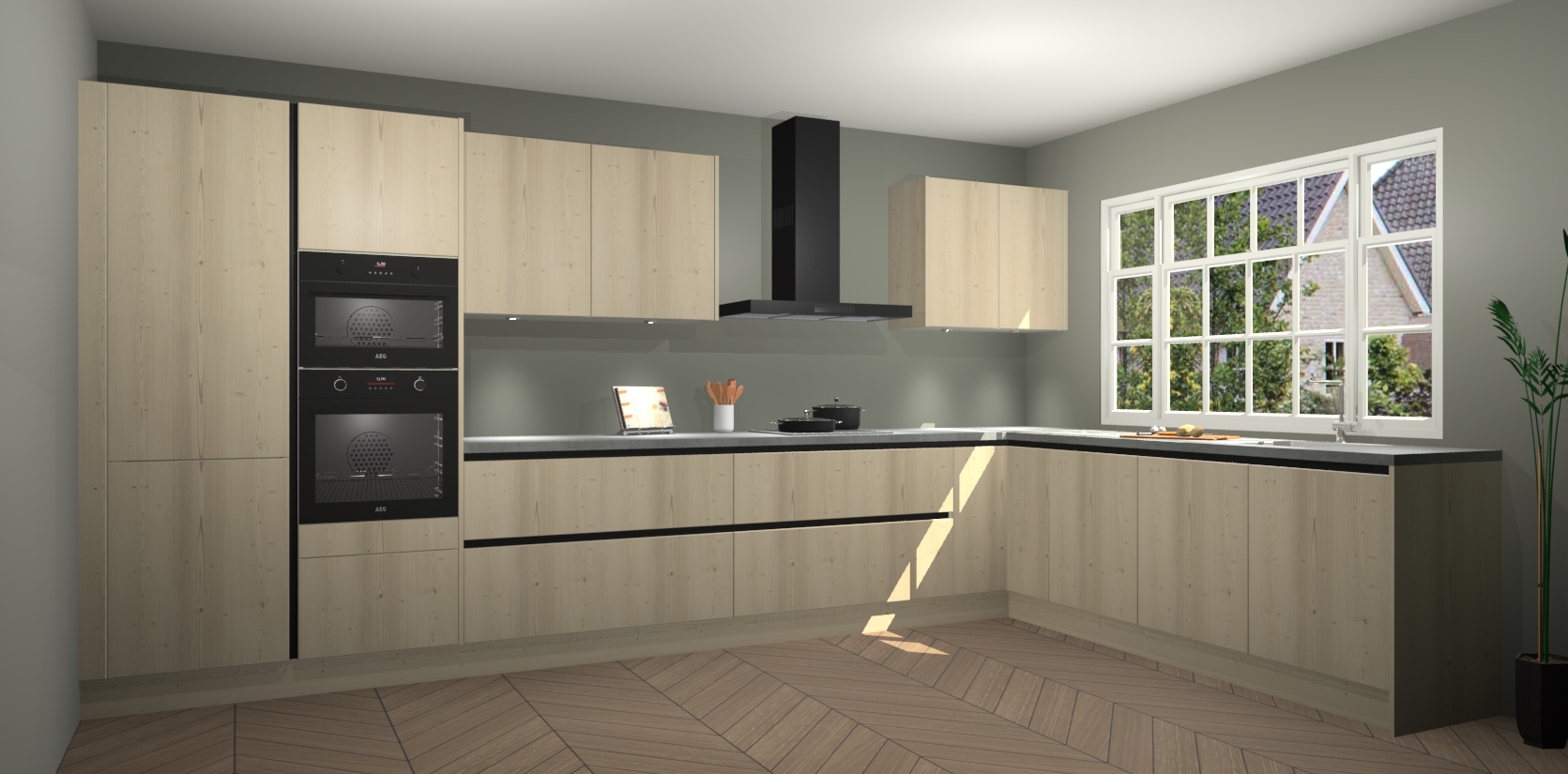 Kom dichtbij de perfecte keuken van uw dromen met de vuren greeploze keuken Graz. Met een prachtige houtlook en eigentijds ontwerp, straalt deze keuken warmte en sfeer uit. Of u nu liefhebber bent van traditionele of moderne stijlen, er is genoeg ruimte om aan al uw behoeften te voldoen.