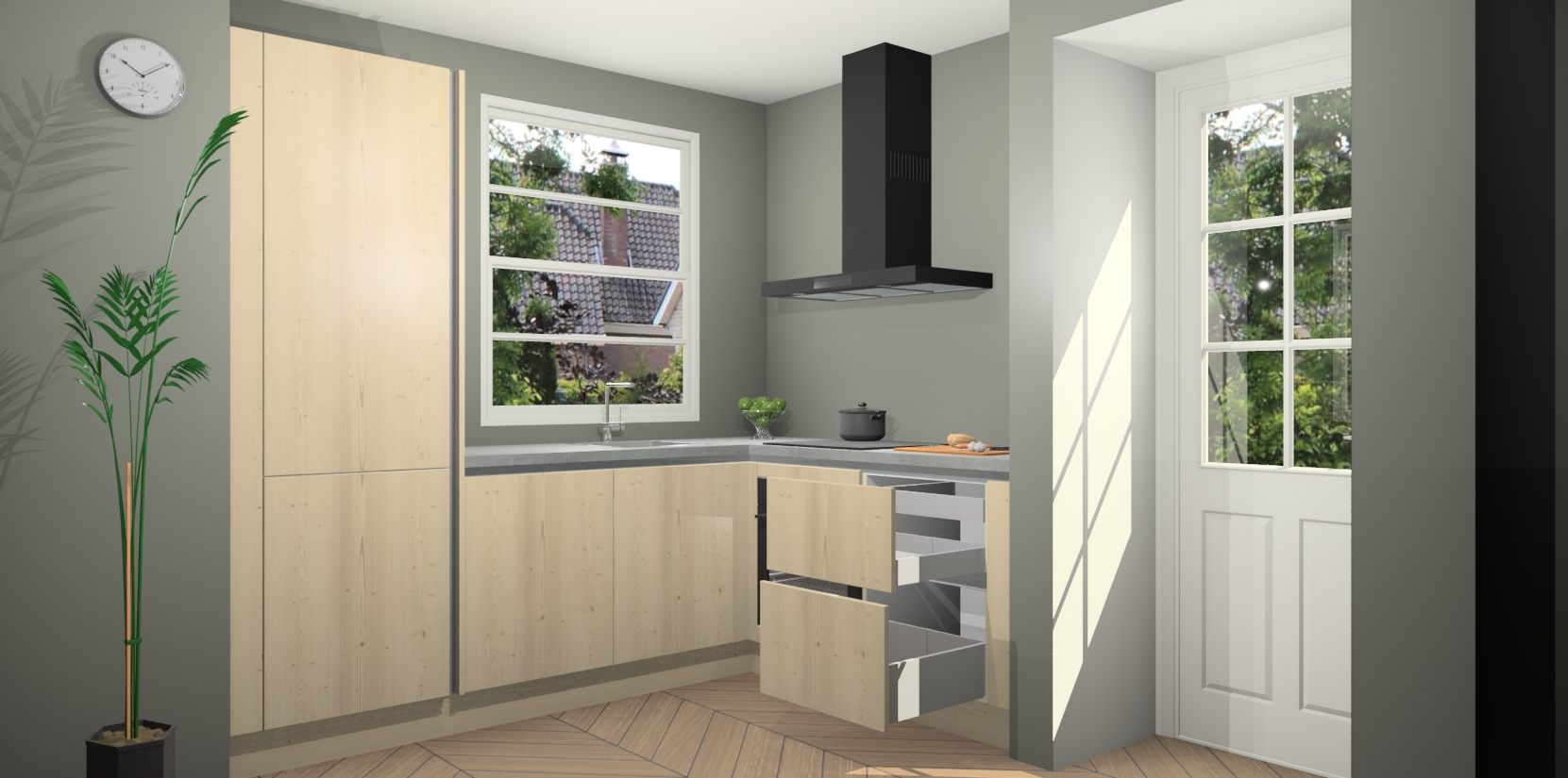 Wilt u een echte aanwinst voor uw keuken, maar bent u op zoek naar iets specialers dan de standaardkeukens? Kies dan voor de Vuren greeploze keuken Harbin! Dit prachtige hoekkeukenontwerp geeft u alle ruimte om optimaal te genieten van heerlijk koken. Het uitmuntende afwerkingsniveau, de fraaie houtstructuur en de sfeervolle zwarte grepen maken van de Vuren greeploze keuken Harbin de perfecte keuze voor zowel enthousiaste thuiskoks als design-minded interieurliefhebbers.