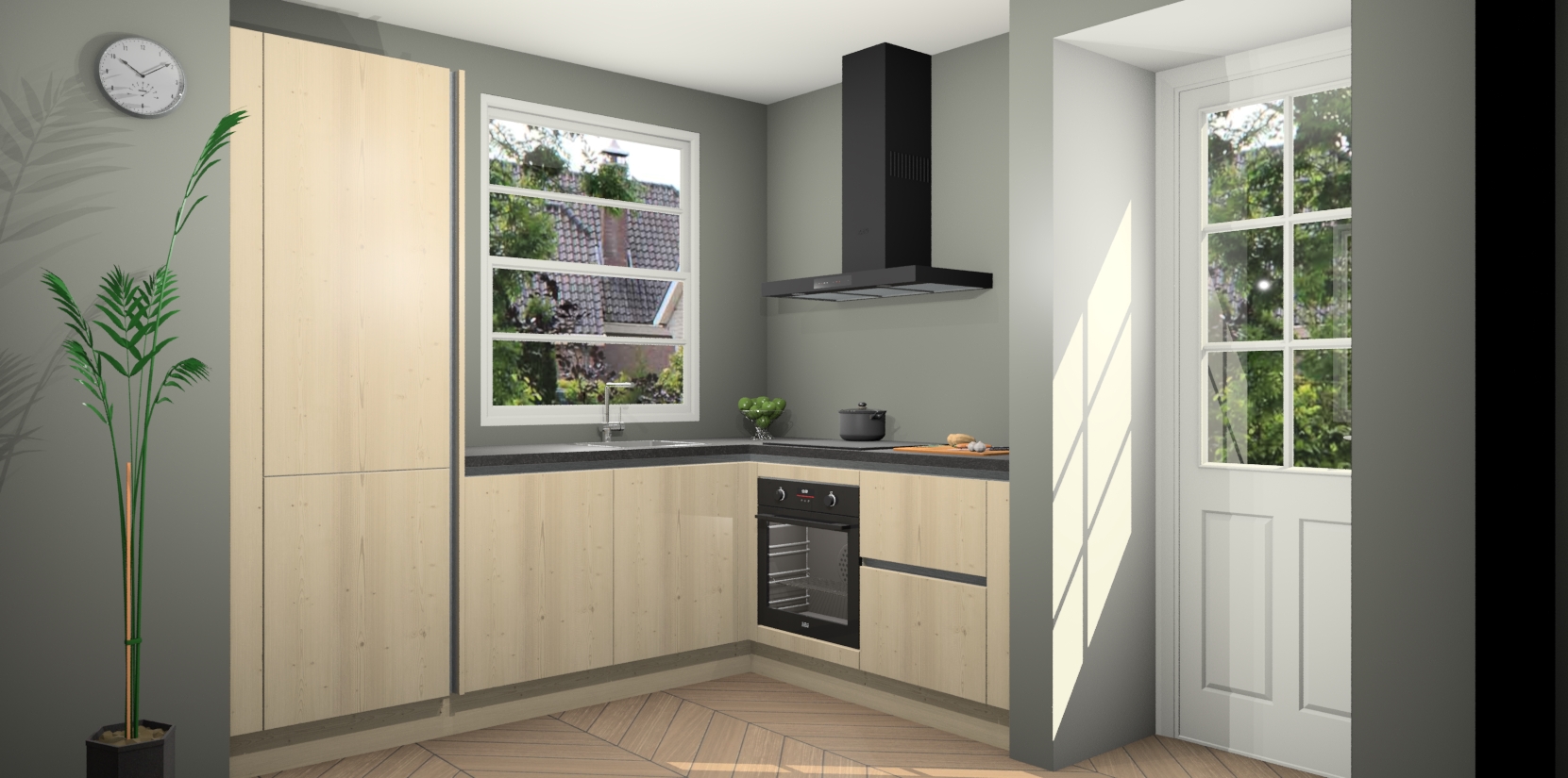 Wilt u een echte aanwinst voor uw keuken, maar bent u op zoek naar iets specialers dan de standaardkeukens? Kies dan voor de Vuren greeploze keuken Harbin! Dit prachtige hoekkeukenontwerp geeft u alle ruimte om optimaal te genieten van heerlijk koken. Het uitmuntende afwerkingsniveau, de fraaie houtstructuur en de sfeervolle zwarte grepen maken van de Vuren greeploze keuken Harbin de perfecte keuze voor zowel enthousiaste thuiskoks als design-minded interieurliefhebbers.