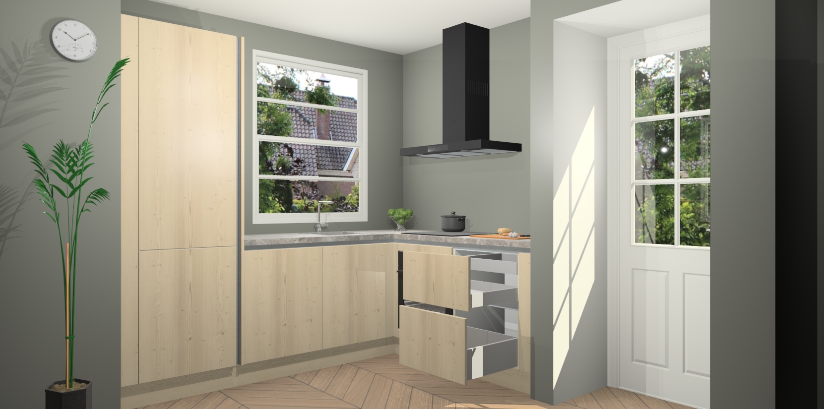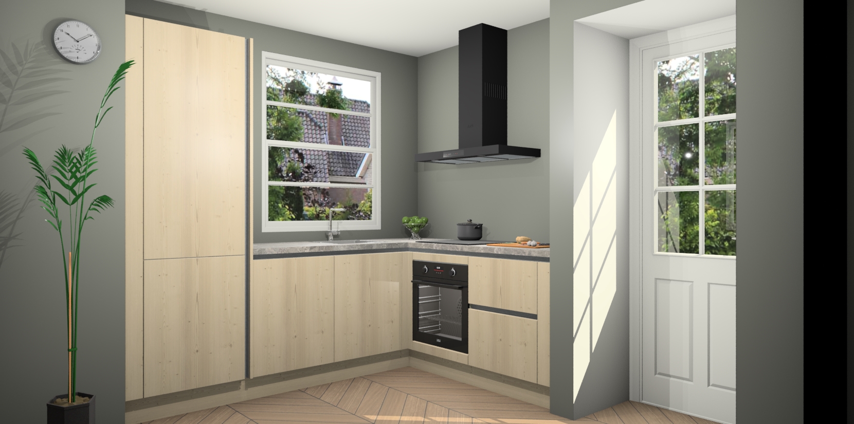 Wilt u een echte aanwinst voor uw keuken, maar bent u op zoek naar iets specialers dan de standaardkeukens? Kies dan voor de Vuren greeploze keuken Harbin! Dit prachtige hoekkeukenontwerp geeft u alle ruimte om optimaal te genieten van heerlijk koken. Het uitmuntende afwerkingsniveau, de fraaie houtstructuur en de sfeervolle zwarte grepen maken van de Vuren greeploze keuken Harbin de perfecte keuze voor zowel enthousiaste thuiskoks als design-minded interieurliefhebbers.