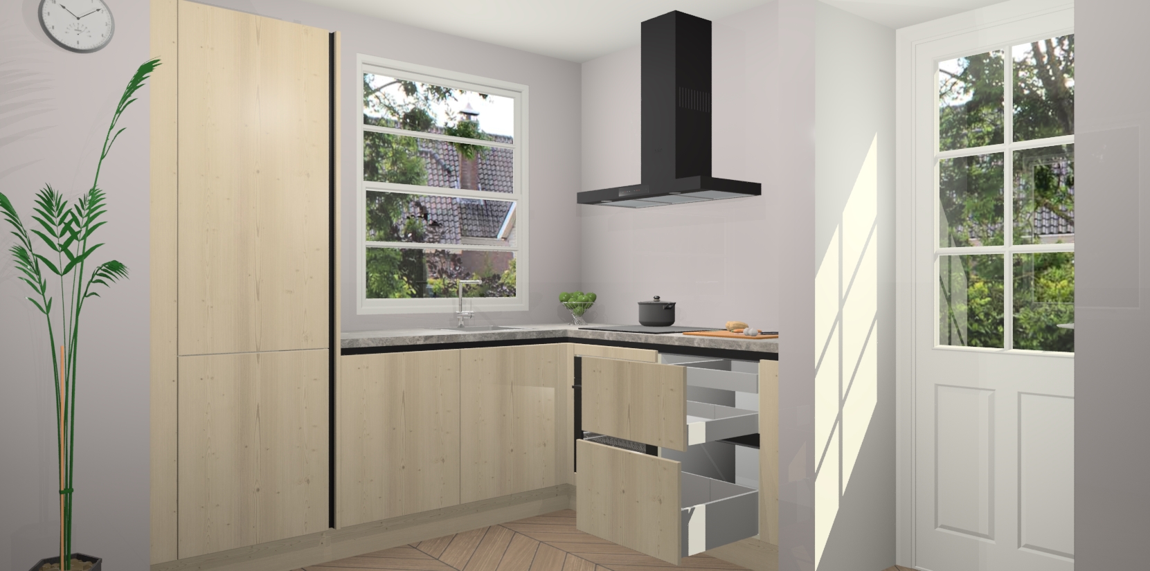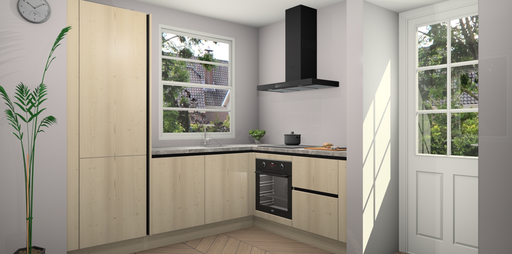 Wilt u een echte aanwinst voor uw keuken, maar bent u op zoek naar iets specialers dan de standaardkeukens? Kies dan voor de Vuren greeploze keuken Harbin! Dit prachtige hoekkeukenontwerp geeft u alle ruimte om optimaal te genieten van heerlijk koken. Het uitmuntende afwerkingsniveau, de fraaie houtstructuur en de sfeervolle zwarte grepen maken van de Vuren greeploze keuken Harbin de perfecte keuze voor zowel enthousiaste thuiskoks als design-minded interieurliefhebbers.