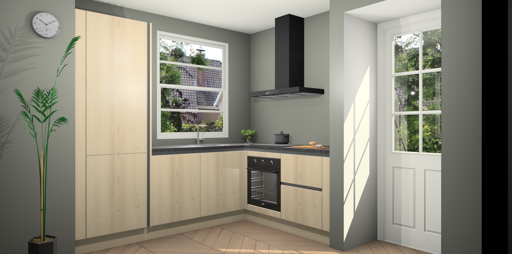 Wilt u een echte aanwinst voor uw keuken, maar bent u op zoek naar iets specialers dan de standaardkeukens? Kies dan voor de Vuren greeploze keuken Harbin! Dit prachtige hoekkeukenontwerp geeft u alle ruimte om optimaal te genieten van heerlijk koken. Het uitmuntende afwerkingsniveau, de fraaie houtstructuur en de sfeervolle zwarte grepen maken van de Vuren greeploze keuken Harbin de perfecte keuze voor zowel enthousiaste thuiskoks als design-minded interieurliefhebbers.