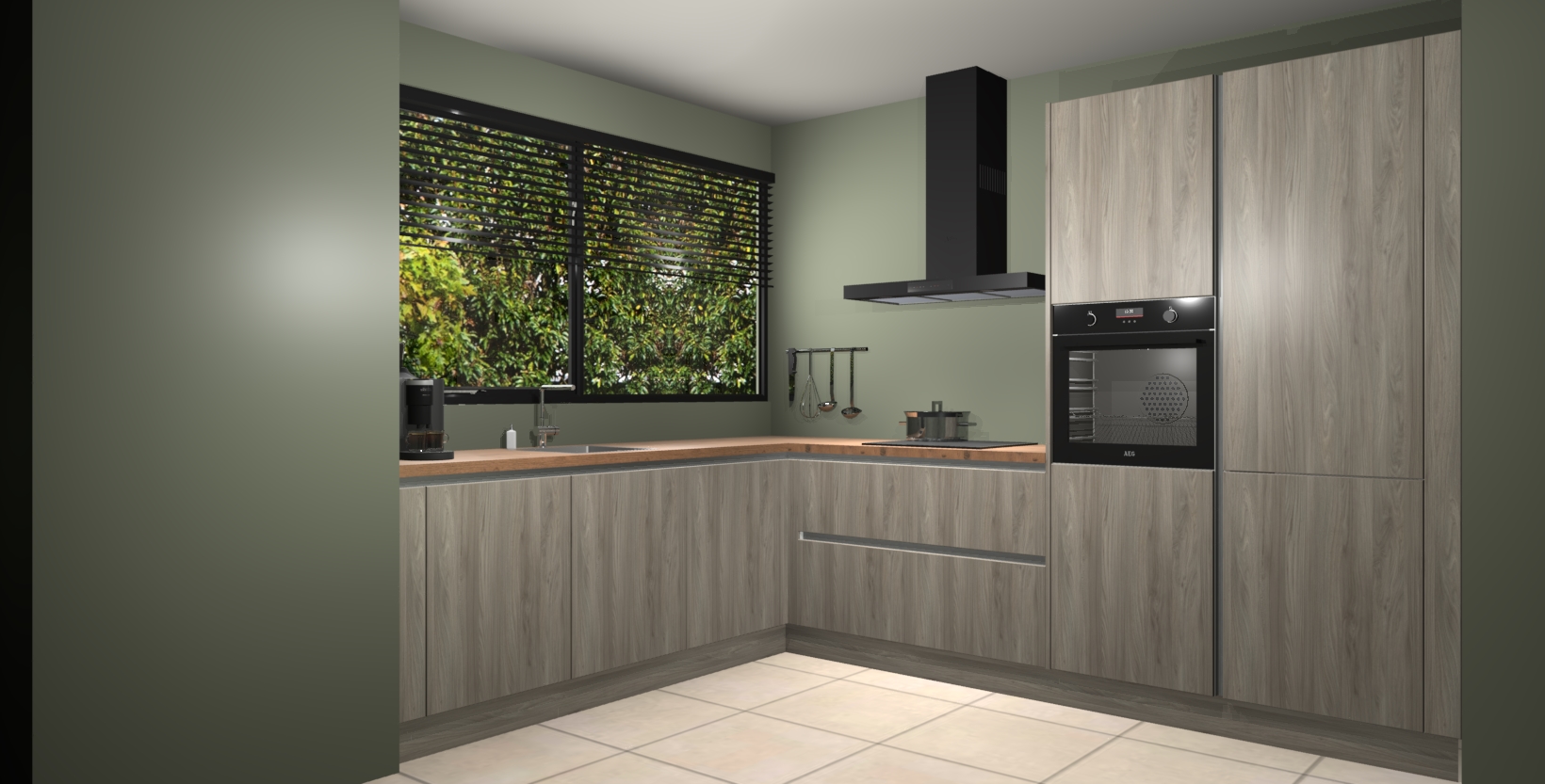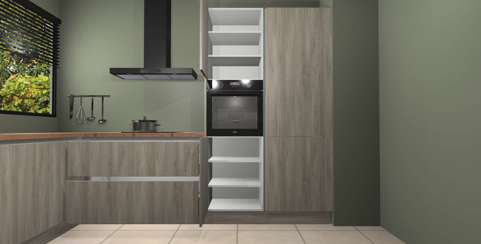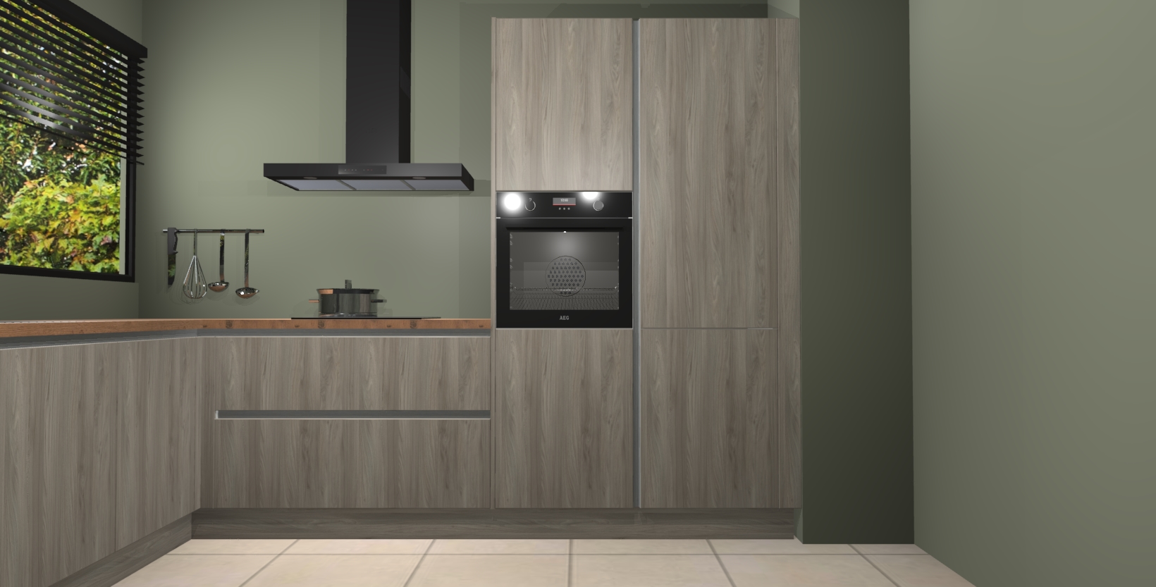 Met een modern, tijdloos design en ruime opslagruimte, zult u zich in no-time thuis voelen in uw nieuwe keuken. Uw leven wordt eenvoudiger met de soft-close deuren die voor het ultieme stille comfort zorgen - geen geluid dat u stoort terwijl u kookt. Ook is de keuken voorzien van 5 ingebouwde apparaten: een oven, inductie kookplaat, afzuigkap, vaatwasser en koelkast. Deze kunnen gemakkelijk na bestelling worden bijgewerkt naar AEG - waardoor uw luxe ervaring compleet is.