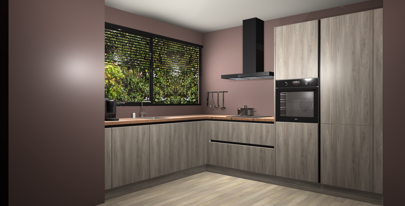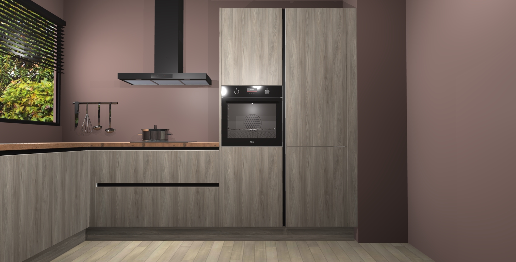 Met een modern, tijdloos design en ruime opslagruimte, zult u zich in no-time thuis voelen in uw nieuwe keuken. Uw leven wordt eenvoudiger met de soft-close deuren die voor het ultieme stille comfort zorgen - geen geluid dat u stoort terwijl u kookt. Ook is de keuken voorzien van 5 ingebouwde apparaten: een oven, inductie kookplaat, afzuigkap, vaatwasser en koelkast. Deze kunnen gemakkelijk na bestelling worden bijgewerkt naar AEG - waardoor uw luxe ervaring compleet is.