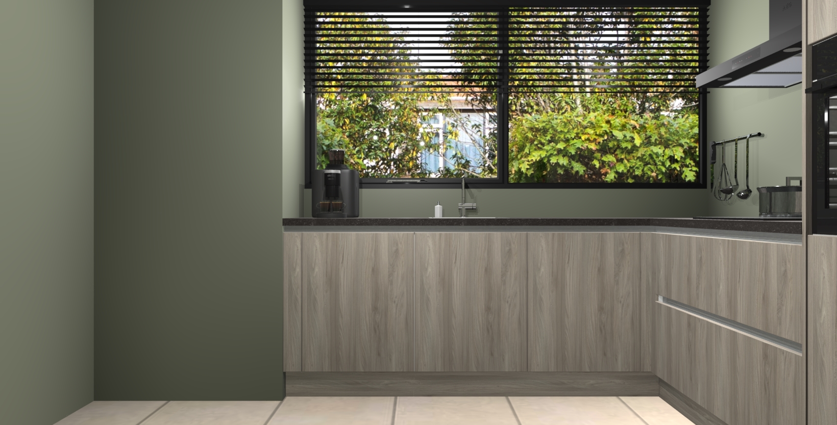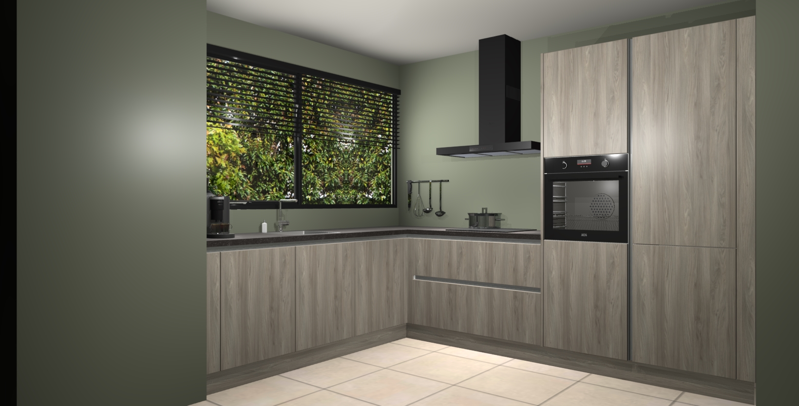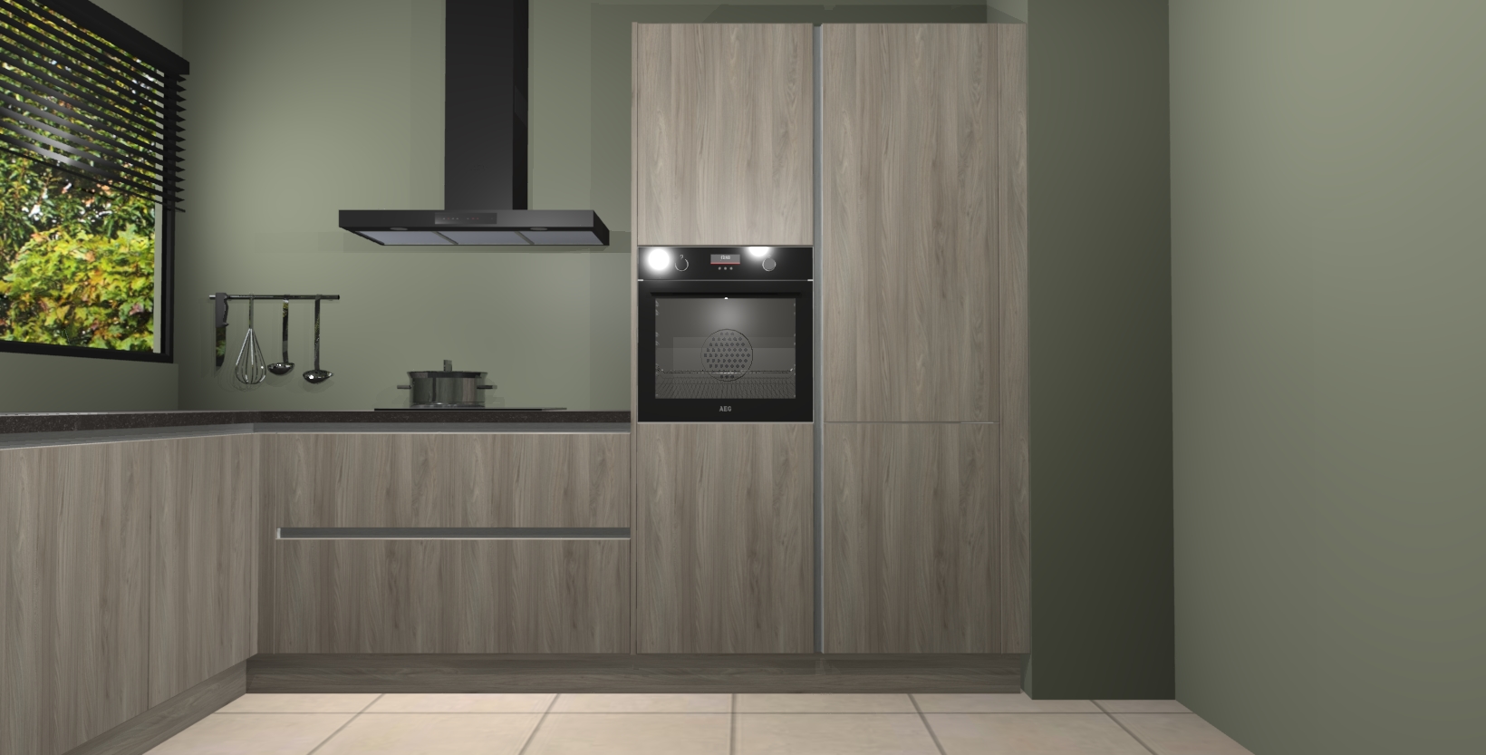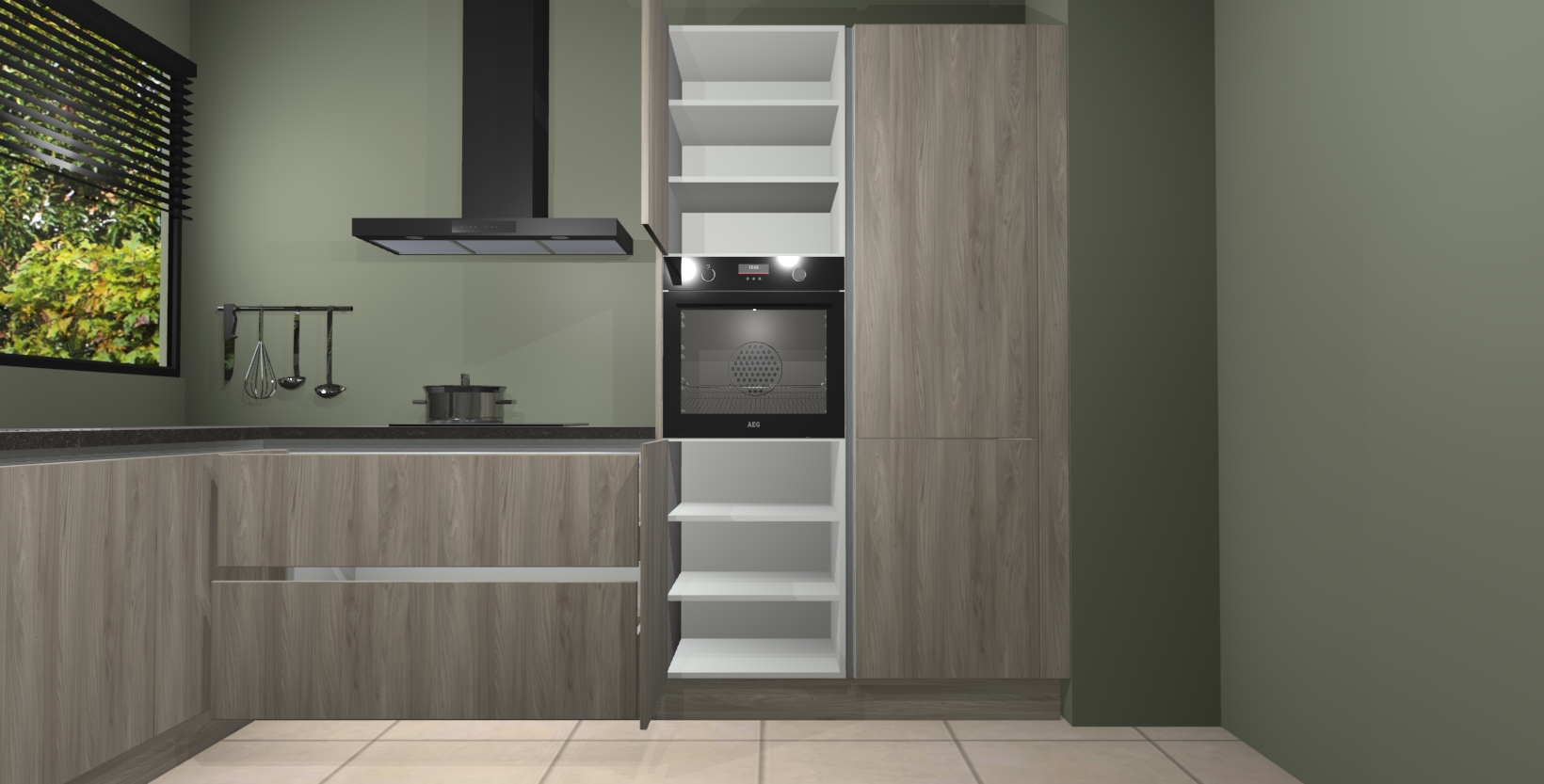 Met een modern, tijdloos design en ruime opslagruimte, zult u zich in no-time thuis voelen in uw nieuwe keuken. Uw leven wordt eenvoudiger met de soft-close deuren die voor het ultieme stille comfort zorgen - geen geluid dat u stoort terwijl u kookt. Ook is de keuken voorzien van 5 ingebouwde apparaten: een oven, inductie kookplaat, afzuigkap, vaatwasser en koelkast. Deze kunnen gemakkelijk na bestelling worden bijgewerkt naar AEG - waardoor uw luxe ervaring compleet is.