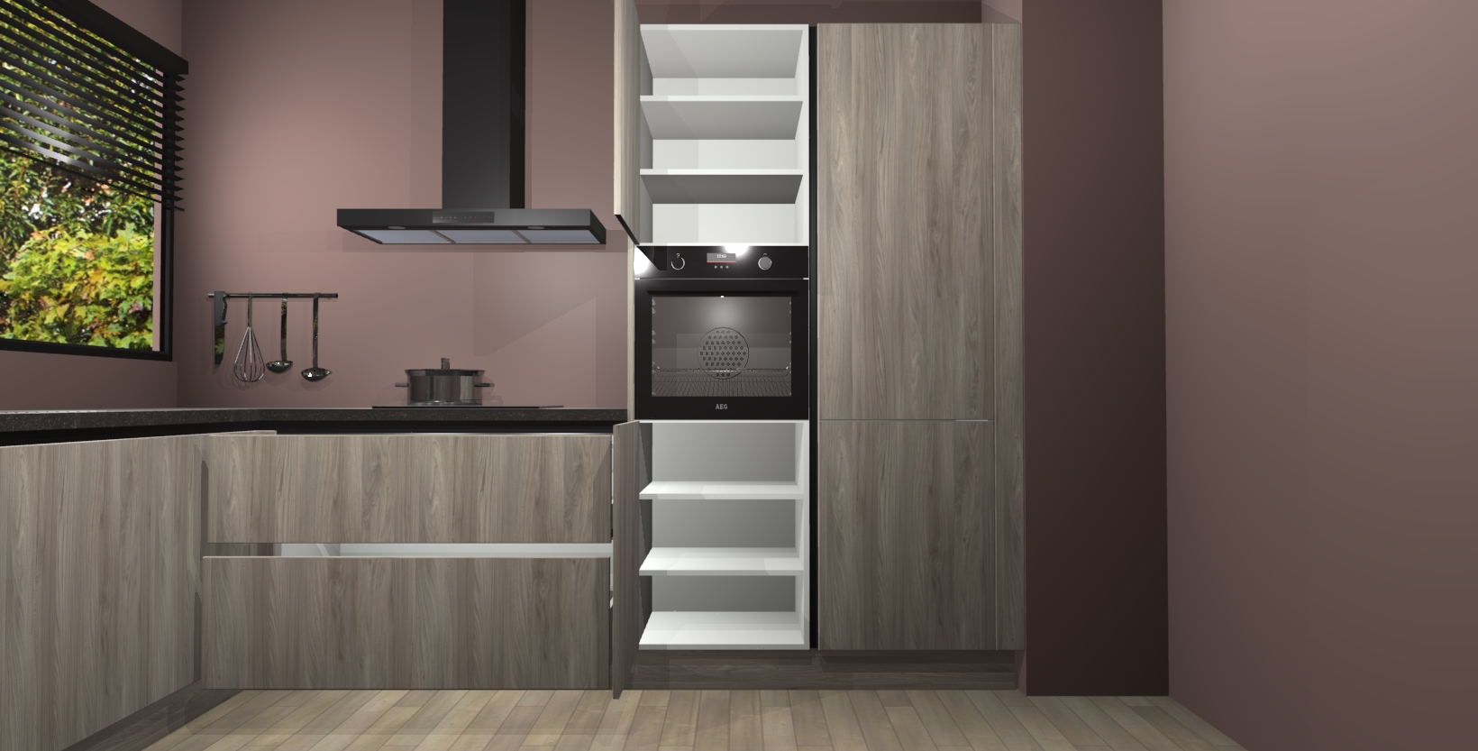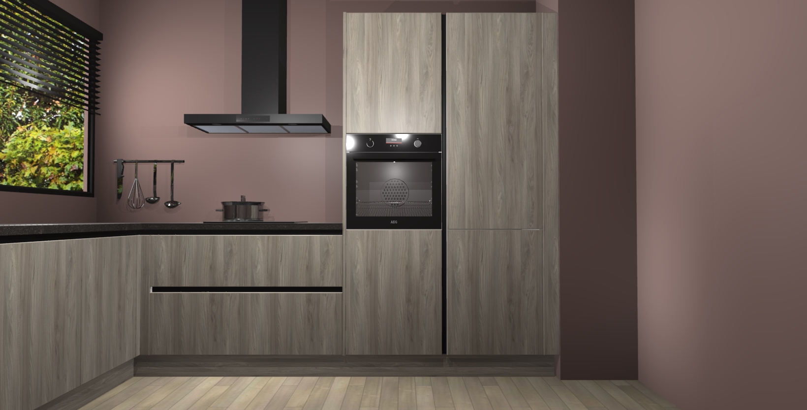 Met een modern, tijdloos design en ruime opslagruimte, zult u zich in no-time thuis voelen in uw nieuwe keuken. Uw leven wordt eenvoudiger met de soft-close deuren die voor het ultieme stille comfort zorgen - geen geluid dat u stoort terwijl u kookt. Ook is de keuken voorzien van 5 ingebouwde apparaten: een oven, inductie kookplaat, afzuigkap, vaatwasser en koelkast. Deze kunnen gemakkelijk na bestelling worden bijgewerkt naar AEG - waardoor uw luxe ervaring compleet is.