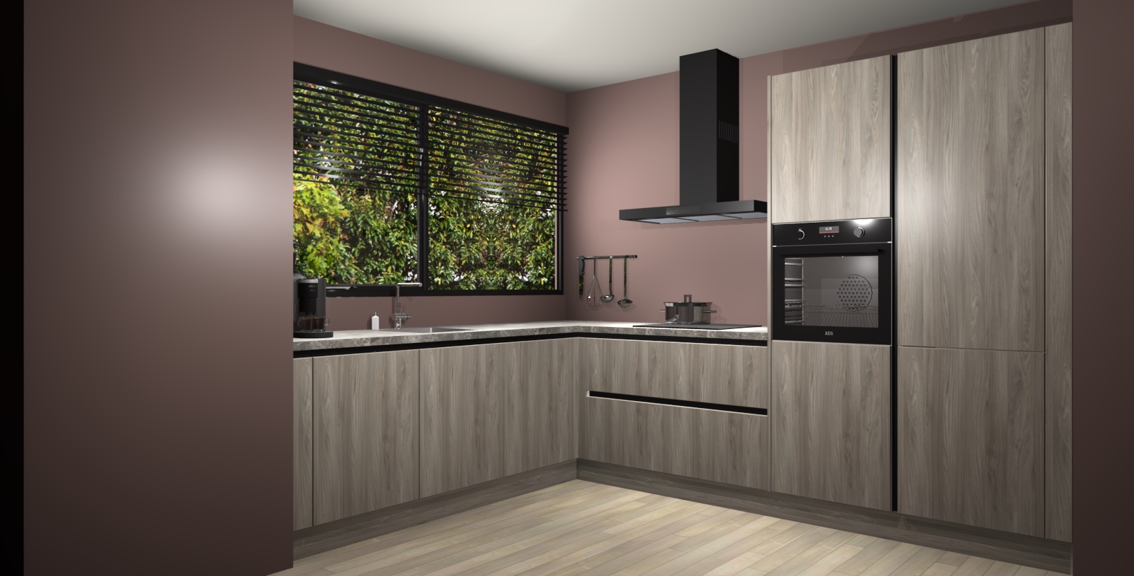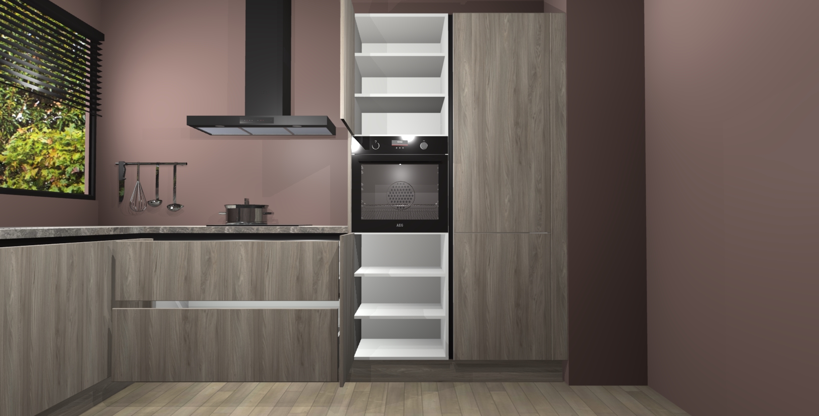 Met een modern, tijdloos design en ruime opslagruimte, zult u zich in no-time thuis voelen in uw nieuwe keuken. Uw leven wordt eenvoudiger met de soft-close deuren die voor het ultieme stille comfort zorgen - geen geluid dat u stoort terwijl u kookt. Ook is de keuken voorzien van 5 ingebouwde apparaten: een oven, inductie kookplaat, afzuigkap, vaatwasser en koelkast. Deze kunnen gemakkelijk na bestelling worden bijgewerkt naar AEG - waardoor uw luxe ervaring compleet is.