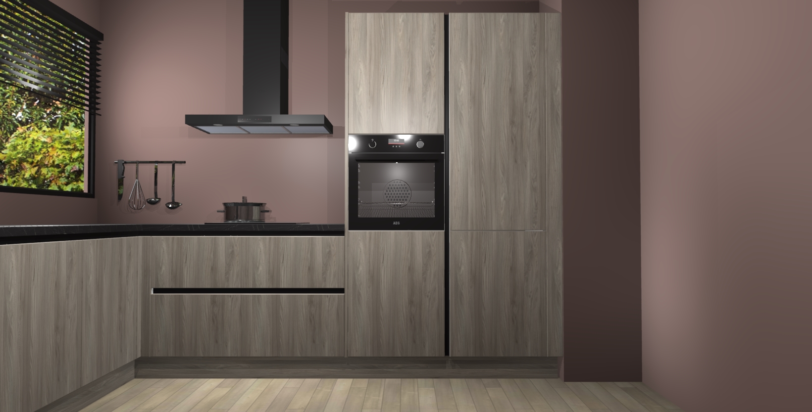 Met een modern, tijdloos design en ruime opslagruimte, zult u zich in no-time thuis voelen in uw nieuwe keuken. Uw leven wordt eenvoudiger met de soft-close deuren die voor het ultieme stille comfort zorgen - geen geluid dat u stoort terwijl u kookt. Ook is de keuken voorzien van 5 ingebouwde apparaten: een oven, inductie kookplaat, afzuigkap, vaatwasser en koelkast. Deze kunnen gemakkelijk na bestelling worden bijgewerkt naar AEG - waardoor uw luxe ervaring compleet is.