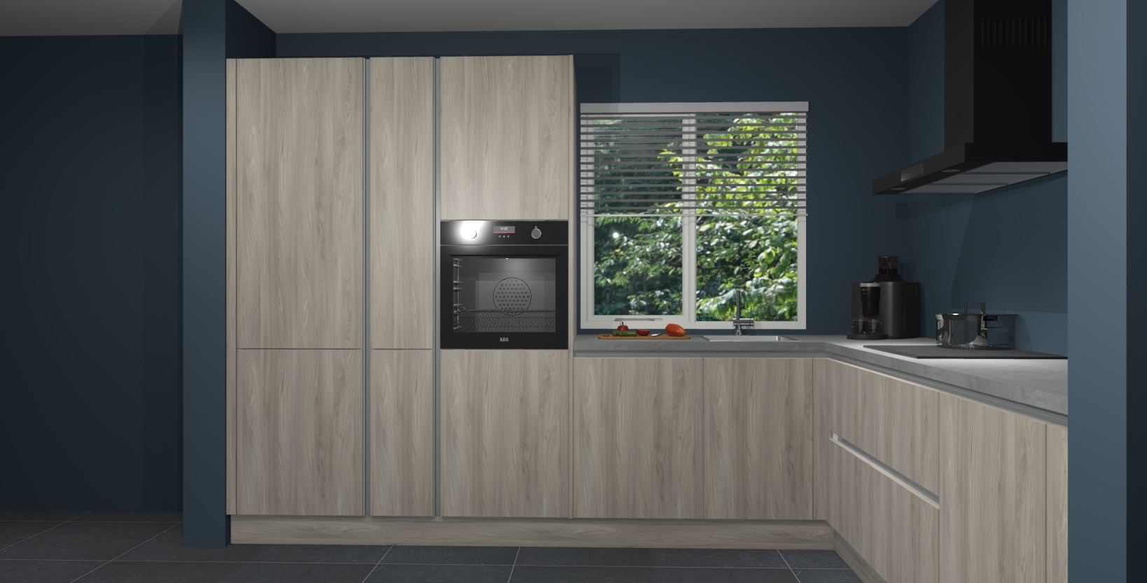 Met een modern, tijdloos design en ruime opslagruimte, zult u zich in no-time thuis voelen in uw nieuwe keuken. Uw leven wordt eenvoudiger met de soft-close deuren die voor het ultieme stille comfort zorgen - geen geluid dat u stoort terwijl u kookt. Ook is de keuken voorzien van 5 ingebouwde apparaten: een oven, inductie kookplaat, afzuigkap, vaatwasser en koelkast. Deze kunnen gemakkelijk na bestelling worden bijgewerkt naar AEG - waardoor uw luxe ervaring compleet is.