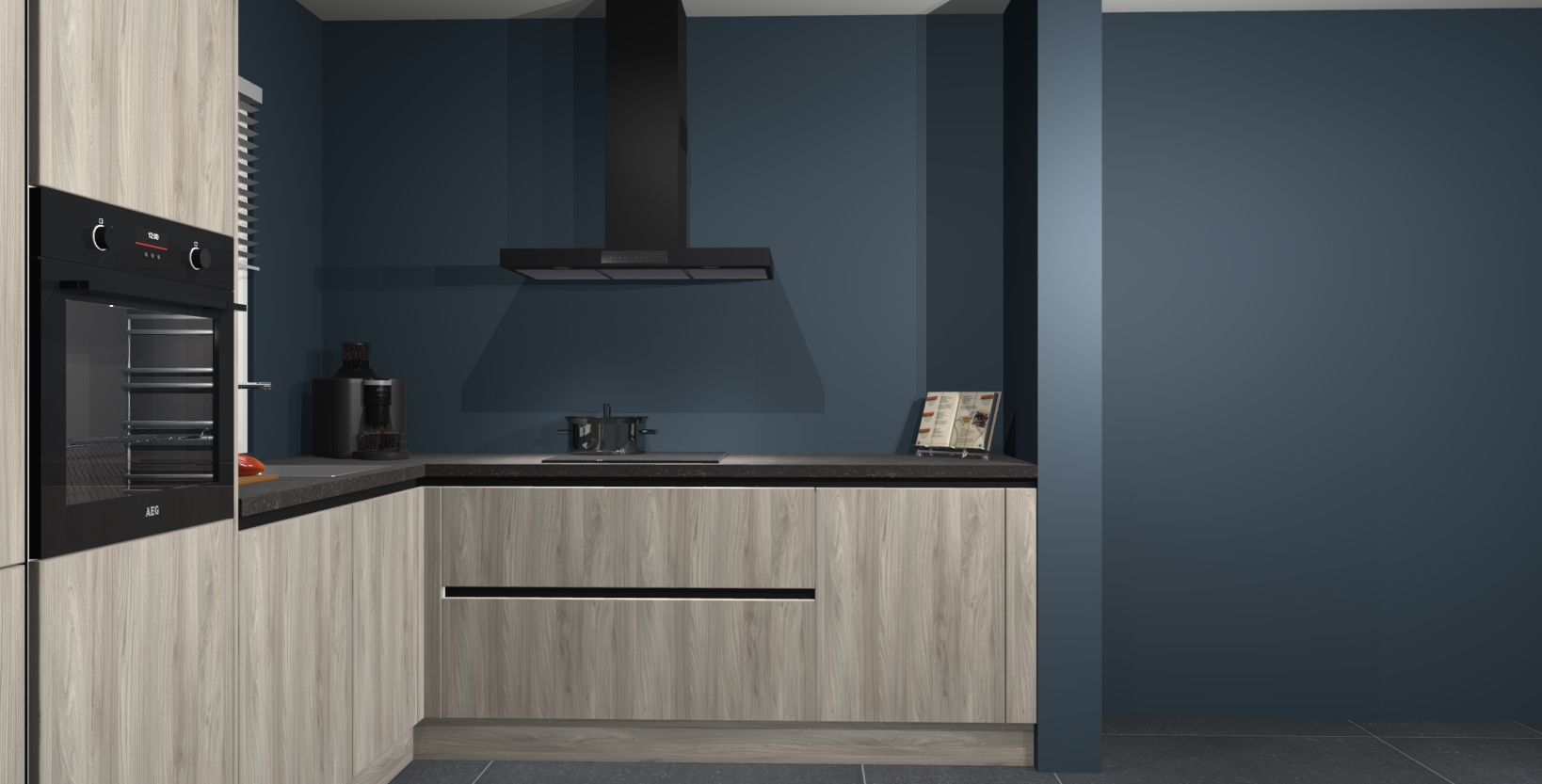 Met een modern, tijdloos design en ruime opslagruimte, zult u zich in no-time thuis voelen in uw nieuwe keuken. Uw leven wordt eenvoudiger met de soft-close deuren die voor het ultieme stille comfort zorgen - geen geluid dat u stoort terwijl u kookt. Ook is de keuken voorzien van 5 ingebouwde apparaten: een oven, inductie kookplaat, afzuigkap, vaatwasser en koelkast. Deze kunnen gemakkelijk na bestelling worden bijgewerkt naar AEG - waardoor uw luxe ervaring compleet is.