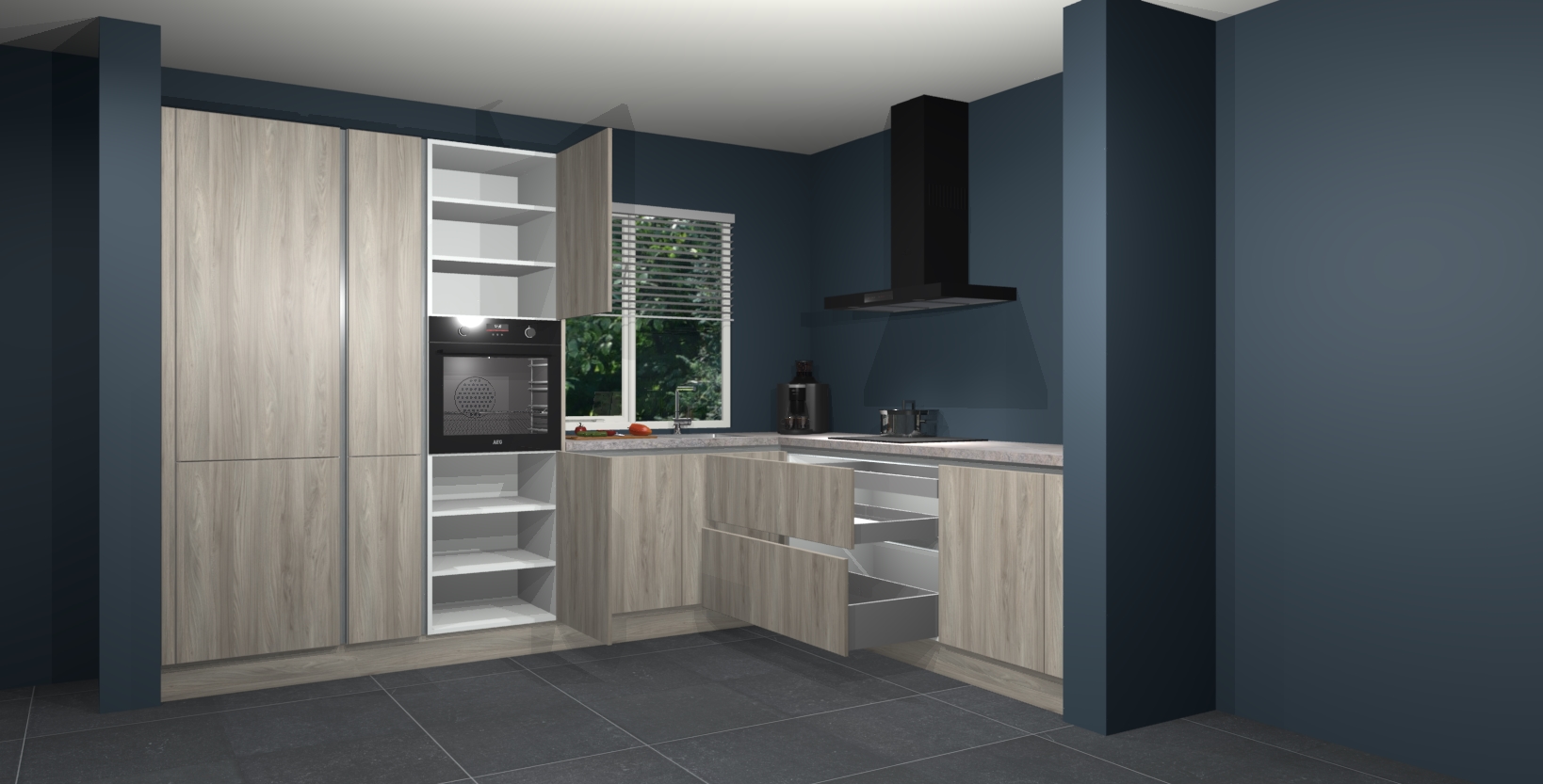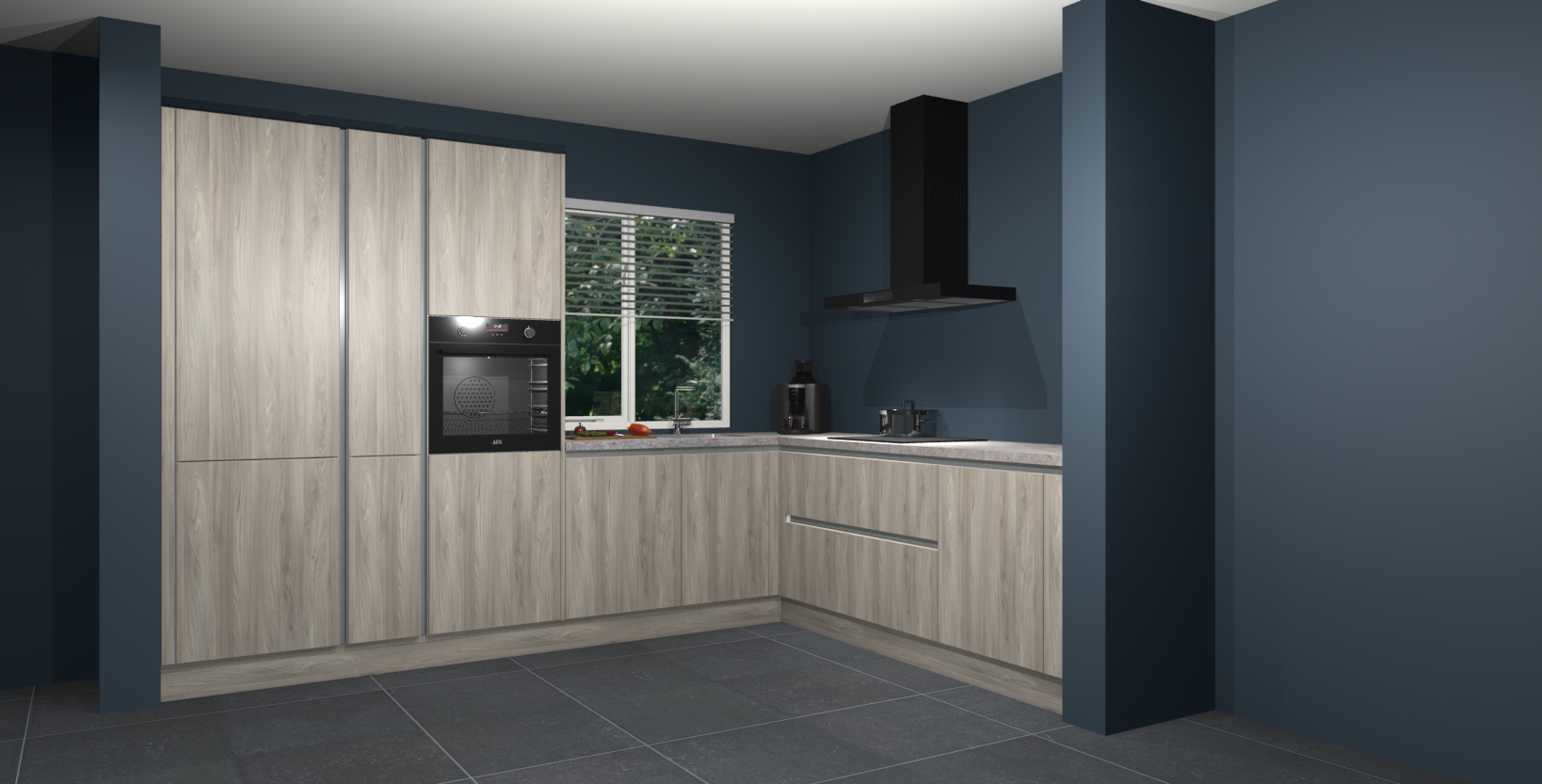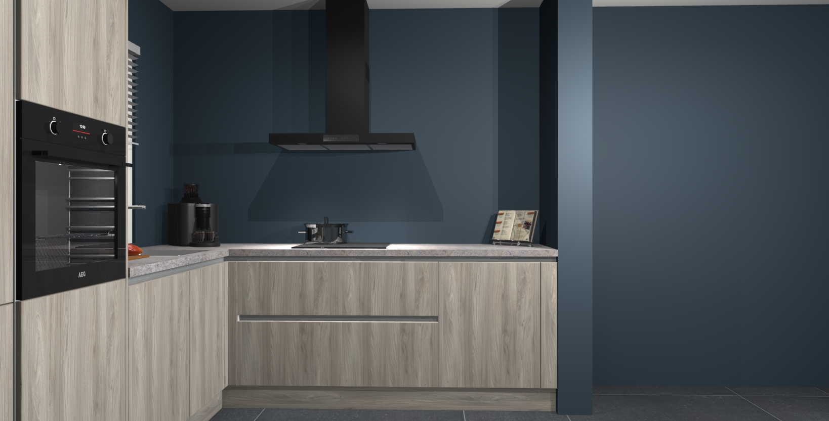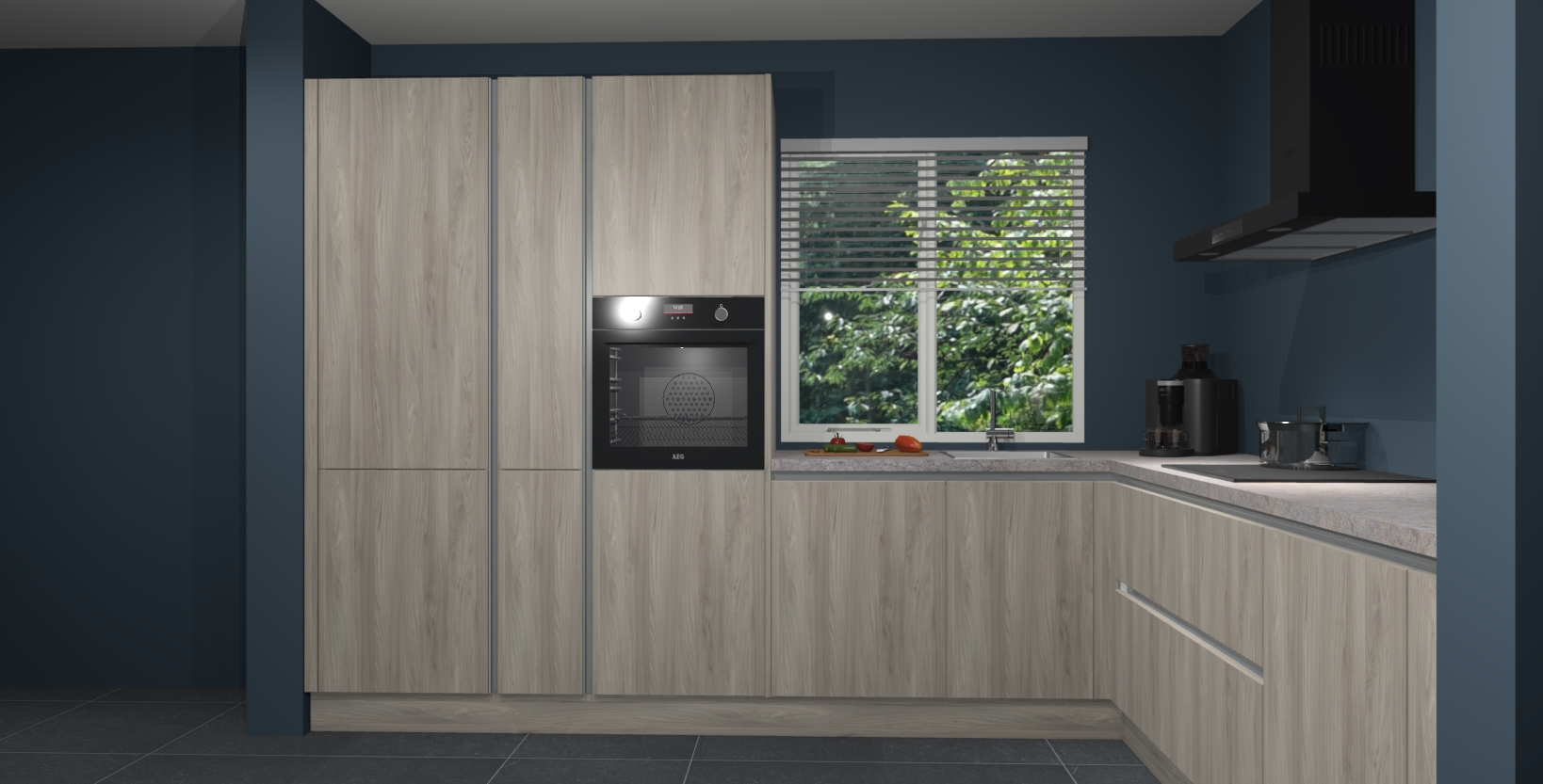 Met een modern, tijdloos design en ruime opslagruimte, zult u zich in no-time thuis voelen in uw nieuwe keuken. Uw leven wordt eenvoudiger met de soft-close deuren die voor het ultieme stille comfort zorgen - geen geluid dat u stoort terwijl u kookt. Ook is de keuken voorzien van 5 ingebouwde apparaten: een oven, inductie kookplaat, afzuigkap, vaatwasser en koelkast. Deze kunnen gemakkelijk na bestelling worden bijgewerkt naar AEG - waardoor uw luxe ervaring compleet is.