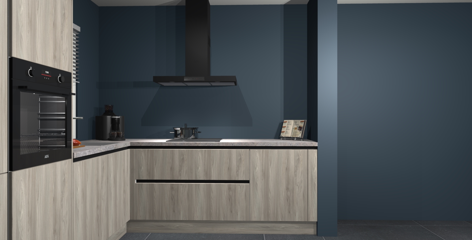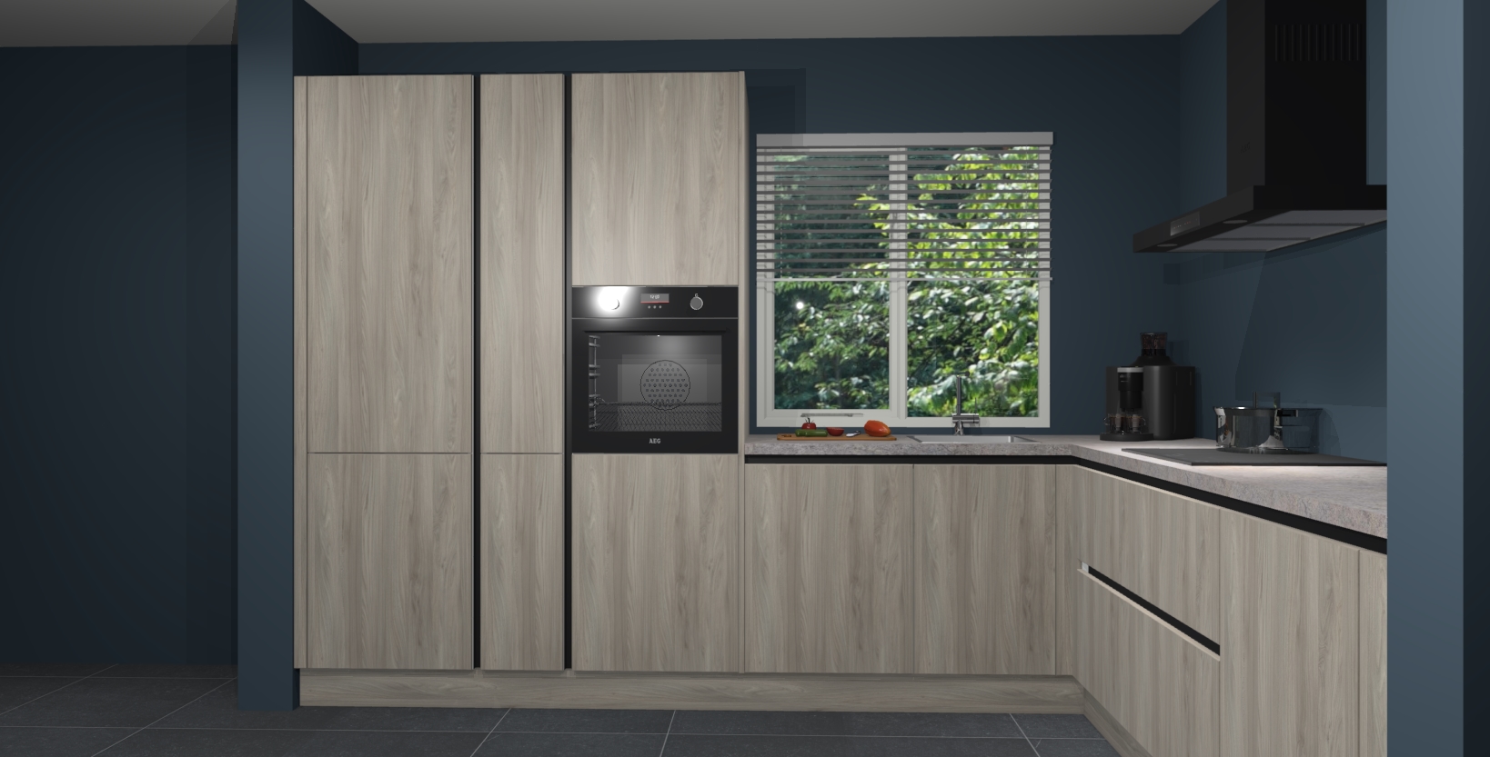 Met een modern, tijdloos design en ruime opslagruimte, zult u zich in no-time thuis voelen in uw nieuwe keuken. Uw leven wordt eenvoudiger met de soft-close deuren die voor het ultieme stille comfort zorgen - geen geluid dat u stoort terwijl u kookt. Ook is de keuken voorzien van 5 ingebouwde apparaten: een oven, inductie kookplaat, afzuigkap, vaatwasser en koelkast. Deze kunnen gemakkelijk na bestelling worden bijgewerkt naar AEG - waardoor uw luxe ervaring compleet is.