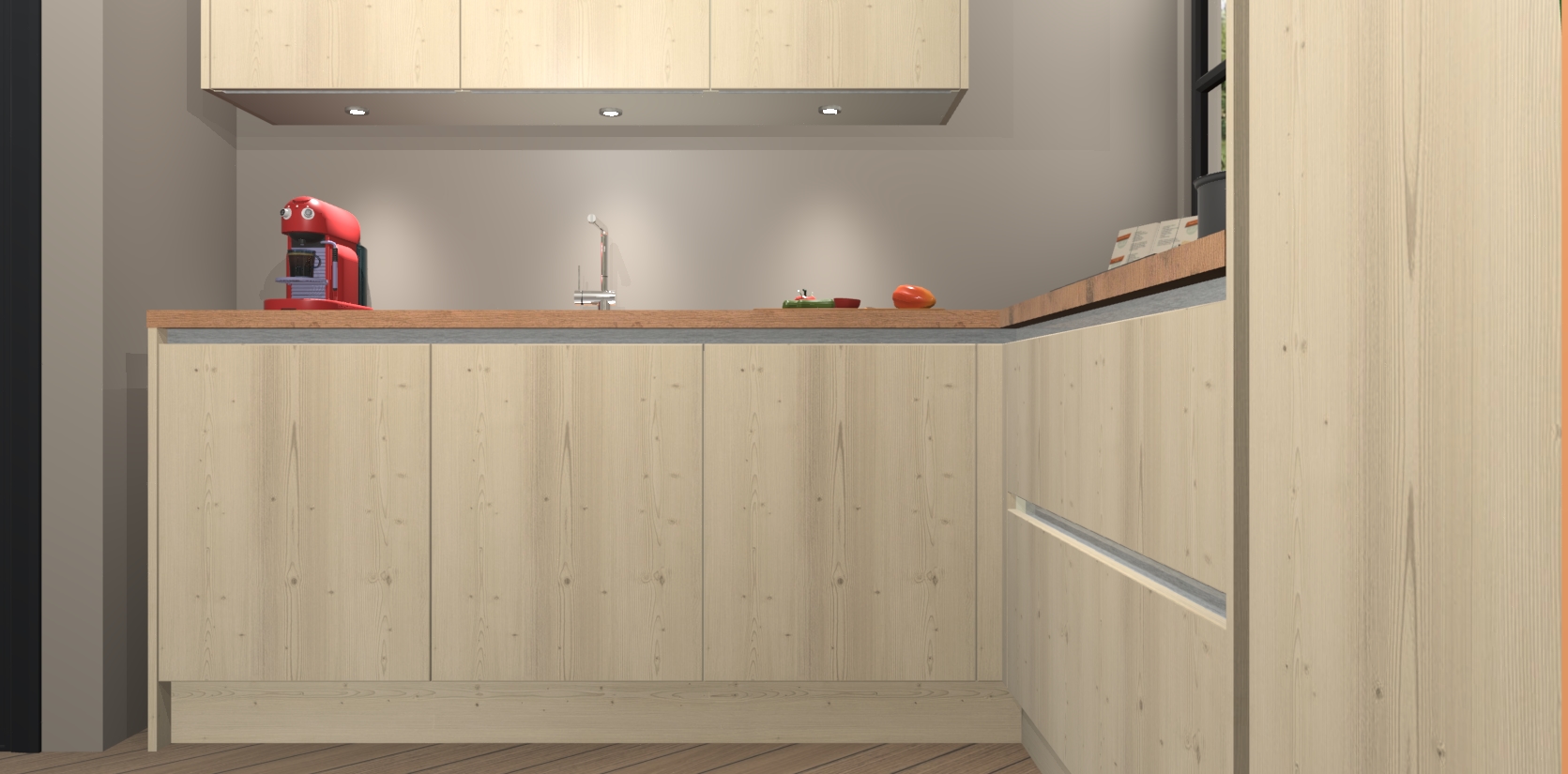 Inclusief plinten, stelpoten en werkblad