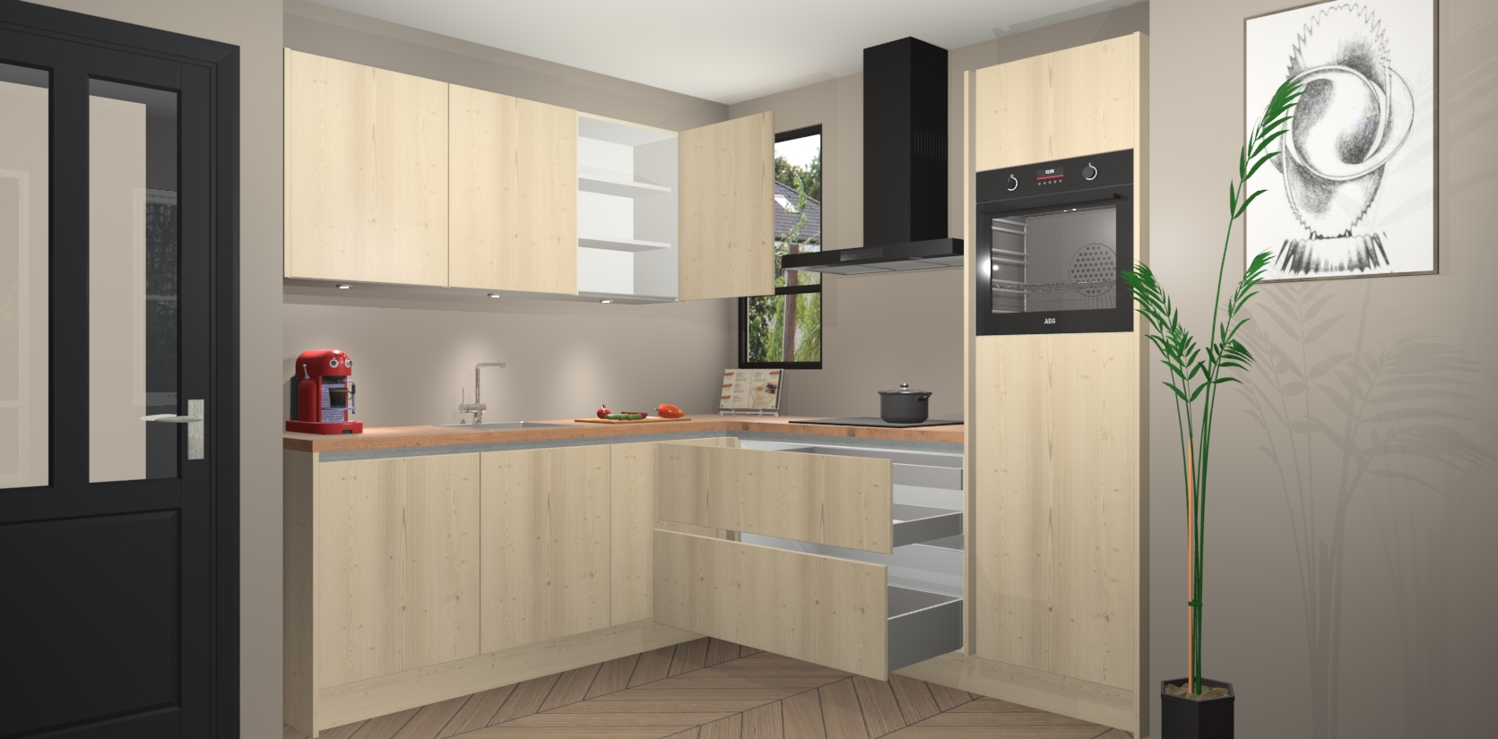 Als extra werd de prijs zo laag mogelijk vastgesteld, zonder aan de kwaliteit te raken. Zo heb je gegarandeerde Duitse keukenkwaliteit waarmee je jarenlang plezier beleeft aan het ontwerp. En dat alles wordt gecombineerd met een supersnelle service van maar liefst 7 weken!