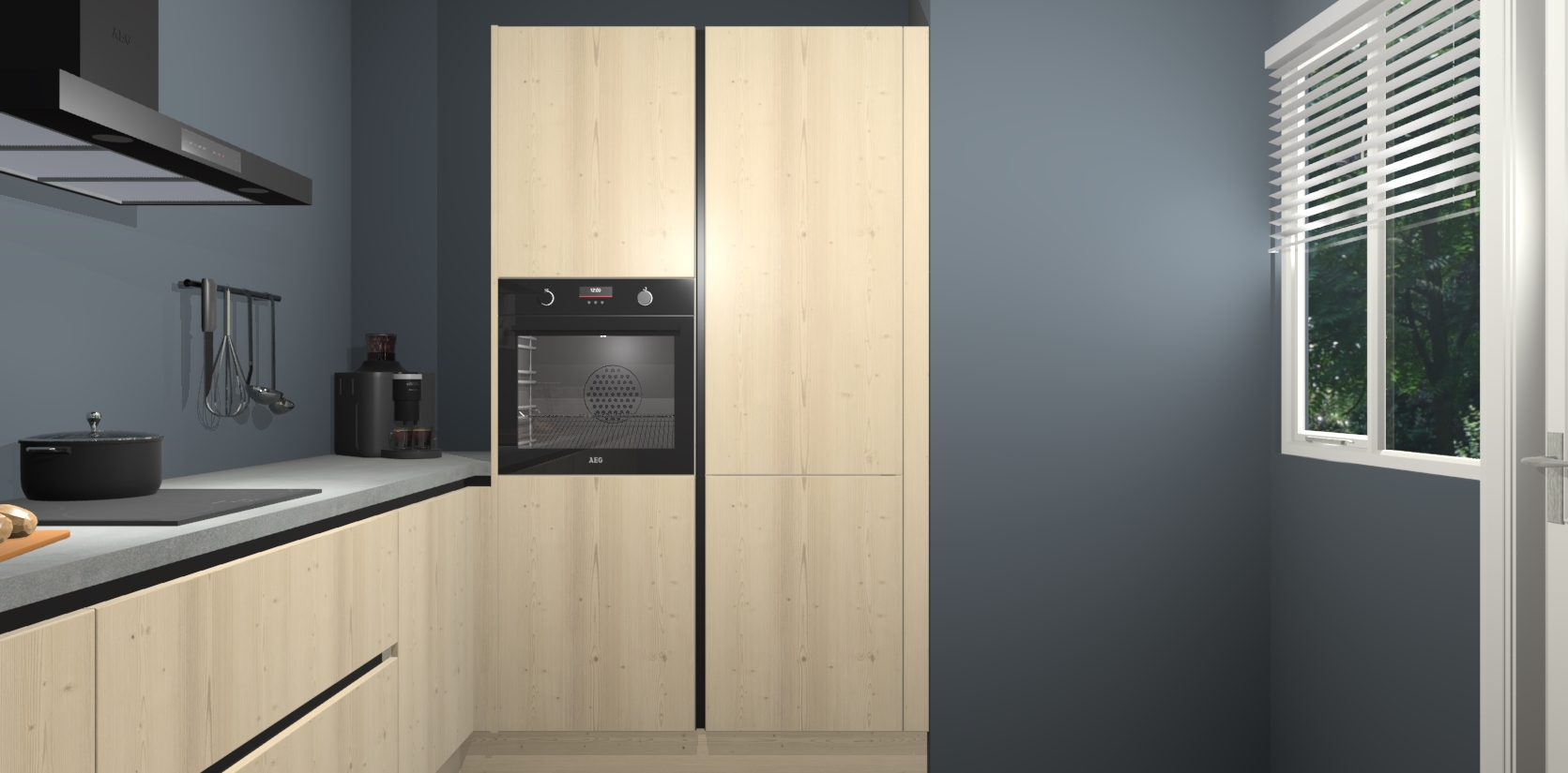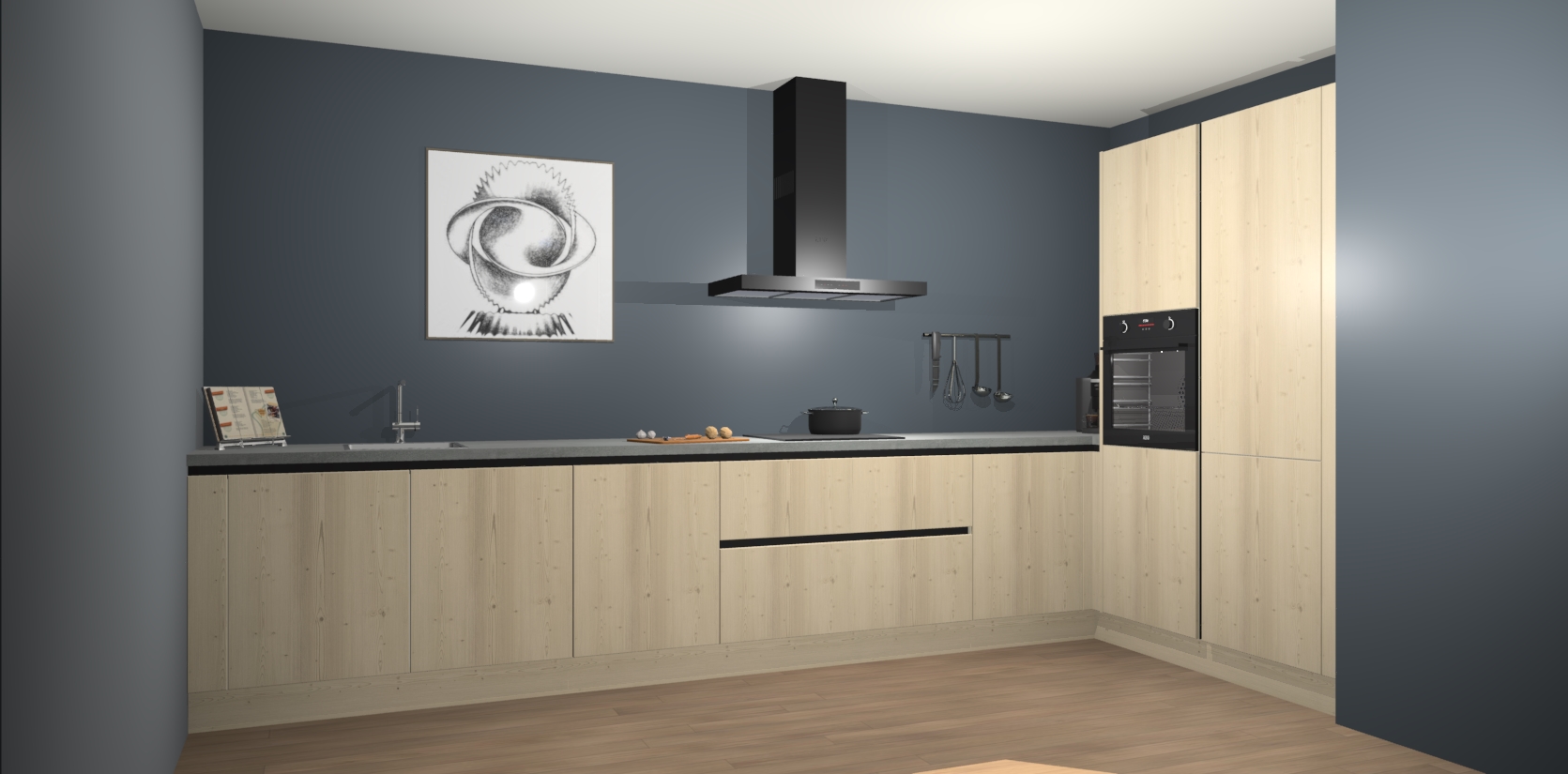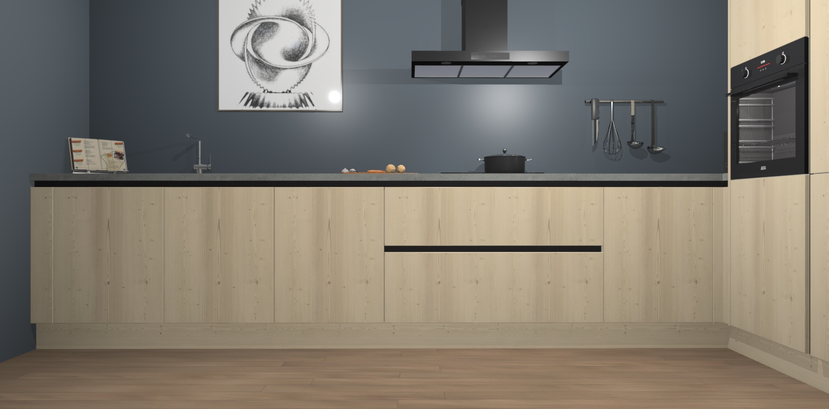 Welkom bij de Vuren greeploze keuken Khao Lak. Deze prachtige keuken zal de komende jaren het middelpunt van de belangstelling in uw huis zijn. Uitgerust met vijf inbouwapparaten komt u nooit kookgereedschap tekort. Bovendien geeft de warme houtlook elke ruimte een uitnodigende en tijdloze uitstraling.