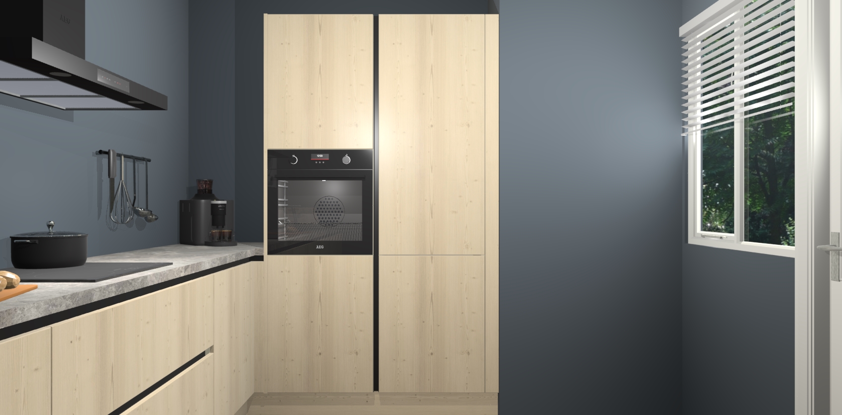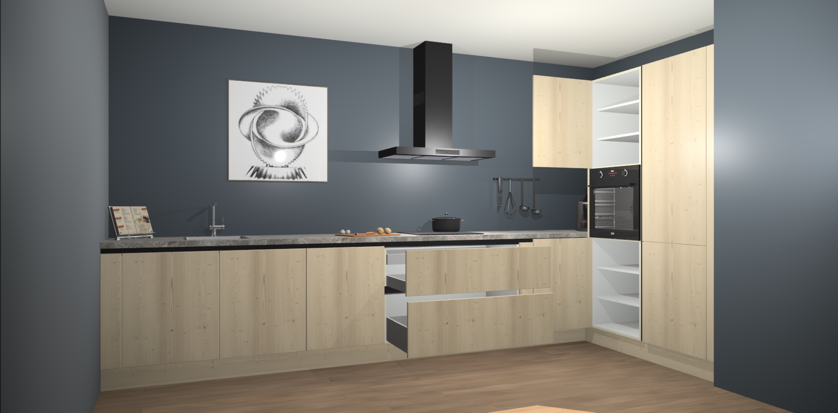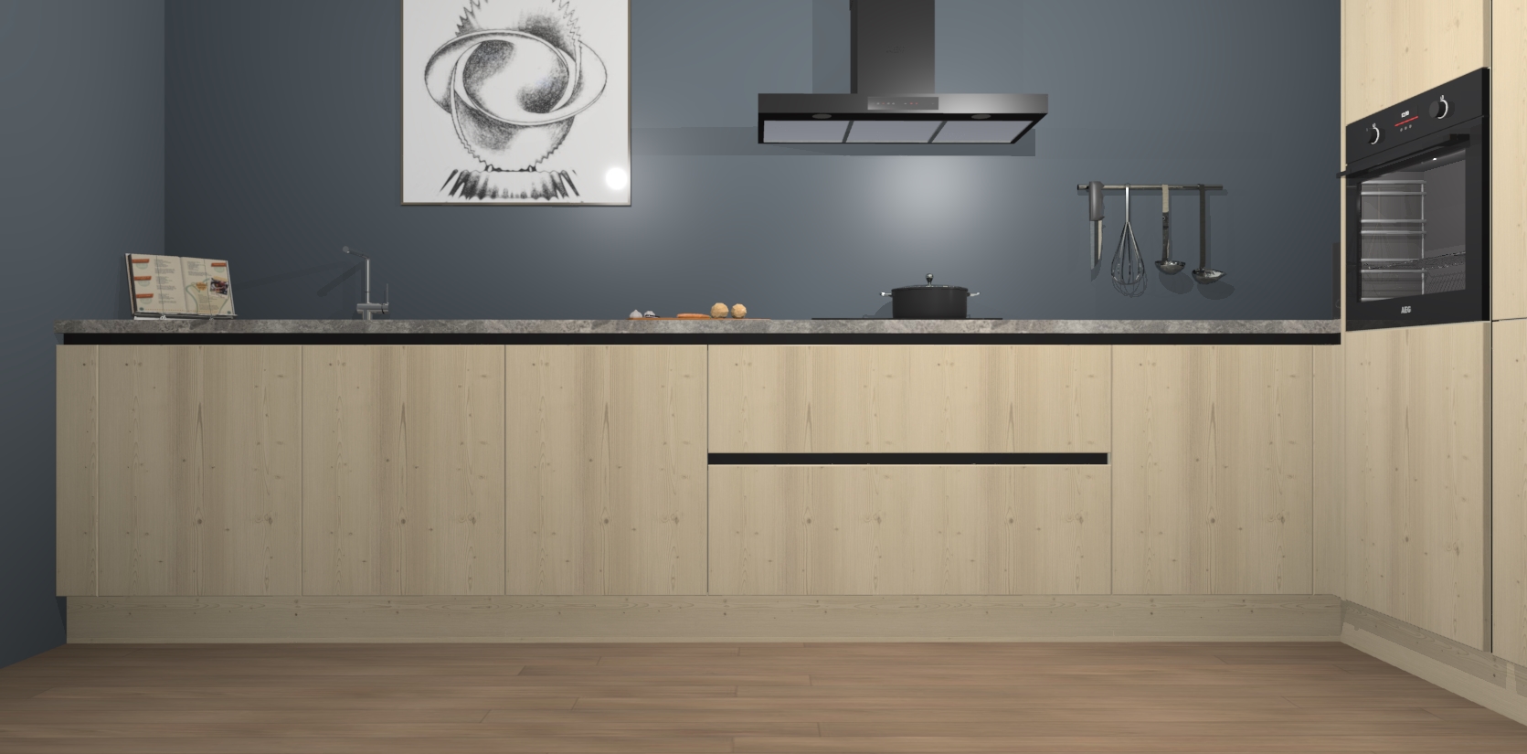 Welkom bij de Vuren greeploze keuken Khao Lak. Deze prachtige keuken zal de komende jaren het middelpunt van de belangstelling in uw huis zijn. Uitgerust met vijf inbouwapparaten komt u nooit kookgereedschap tekort. Bovendien geeft de warme houtlook elke ruimte een uitnodigende en tijdloze uitstraling.