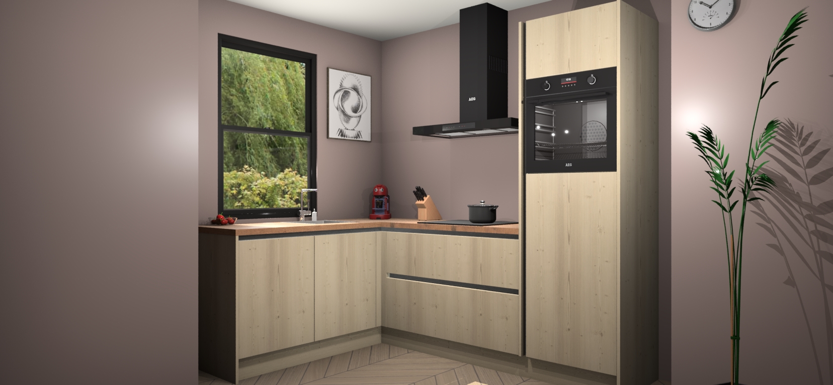 Deze prachtige hoekkeuken heeft alle benodigdheden om uw droomkook- en eetruimte compleet te maken. De Vuren kasten bieden een echo van raffinement, terwijl de 5 inbouwapparaten genoeg opties bieden voor het bereiden van heerlijke maaltijden. De oven, inductiekookplaat, afzuigkap, vaatwasser en koelkast zorgen ervoor dat u tijd in de keuken zo efficiënt mogelijk verloopt, terwijl ze ook dat extra vleugje luxe bieden.