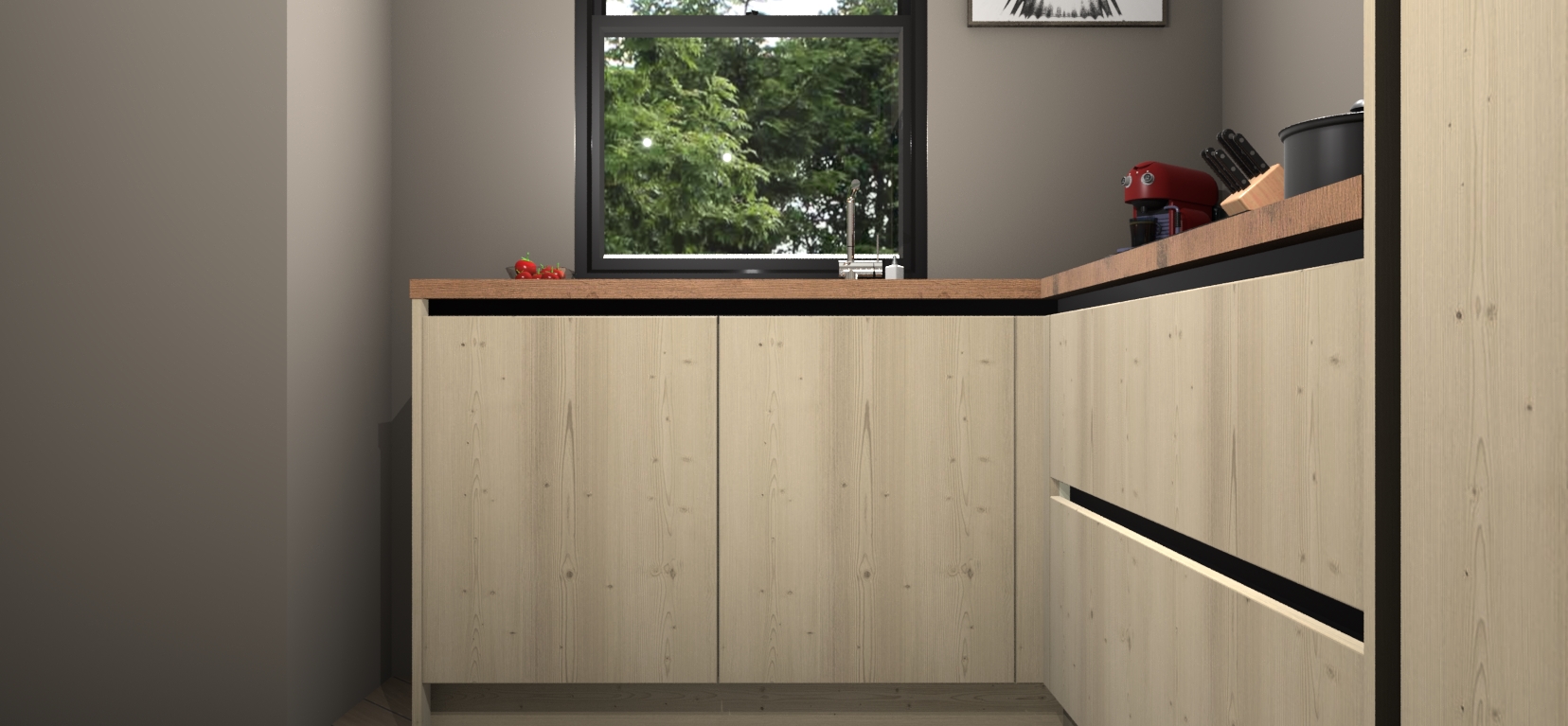 In deze box zijn alle kleuren verzameld van de deuren en werkbladen. Vraag de gratis kleurenbox aan en kijk thuis rustig verder!