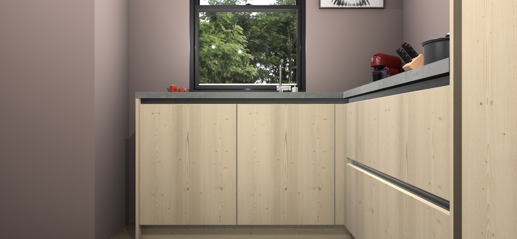 In deze box zijn alle kleuren verzameld van de deuren en werkbladen. Vraag de gratis kleurenbox aan en kijk thuis rustig verder!