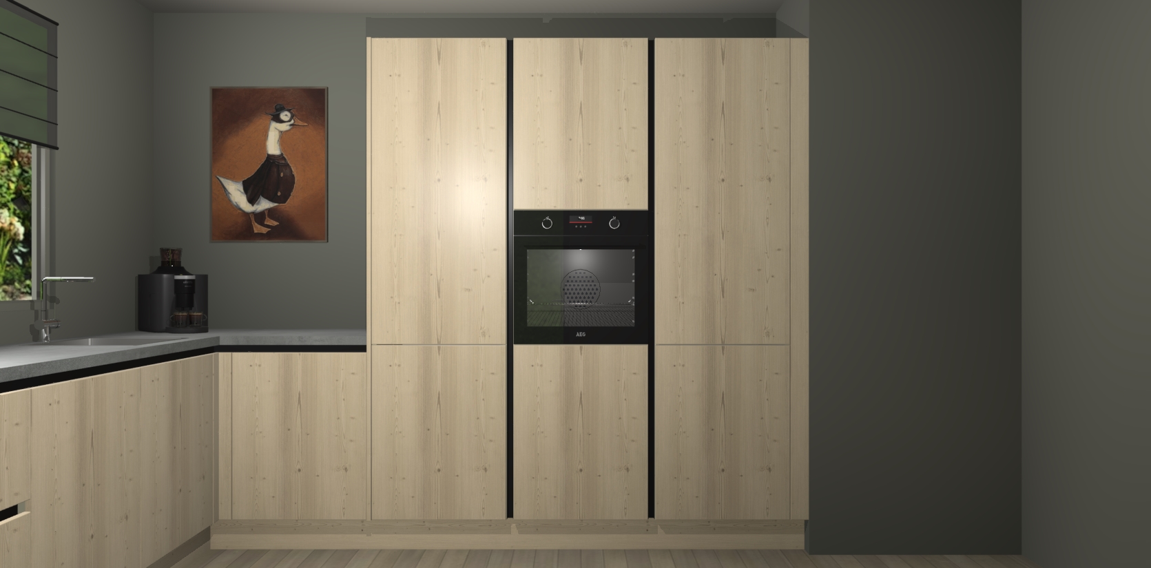 Welkom bij de Vuren greeploze keuken Laos. Deze prachtige keuken zal de komende jaren het middelpunt van de belangstelling in uw huis zijn. Uitgerust met vijf inbouwapparaten komt u nooit kookgereedschap tekort. Bovendien geeft de warme houtlook elke ruimte een uitnodigende en tijdloze uitstraling.