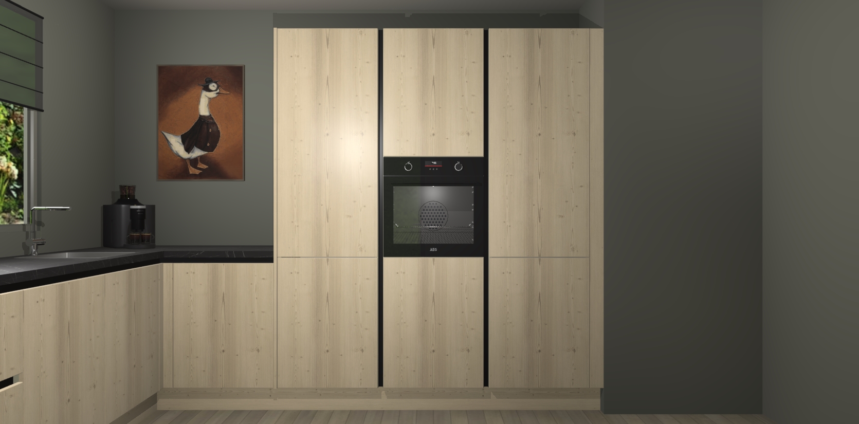 Welkom bij de Vuren greeploze keuken Laos. Deze prachtige keuken zal de komende jaren het middelpunt van de belangstelling in uw huis zijn. Uitgerust met vijf inbouwapparaten komt u nooit kookgereedschap tekort. Bovendien geeft de warme houtlook elke ruimte een uitnodigende en tijdloze uitstraling.