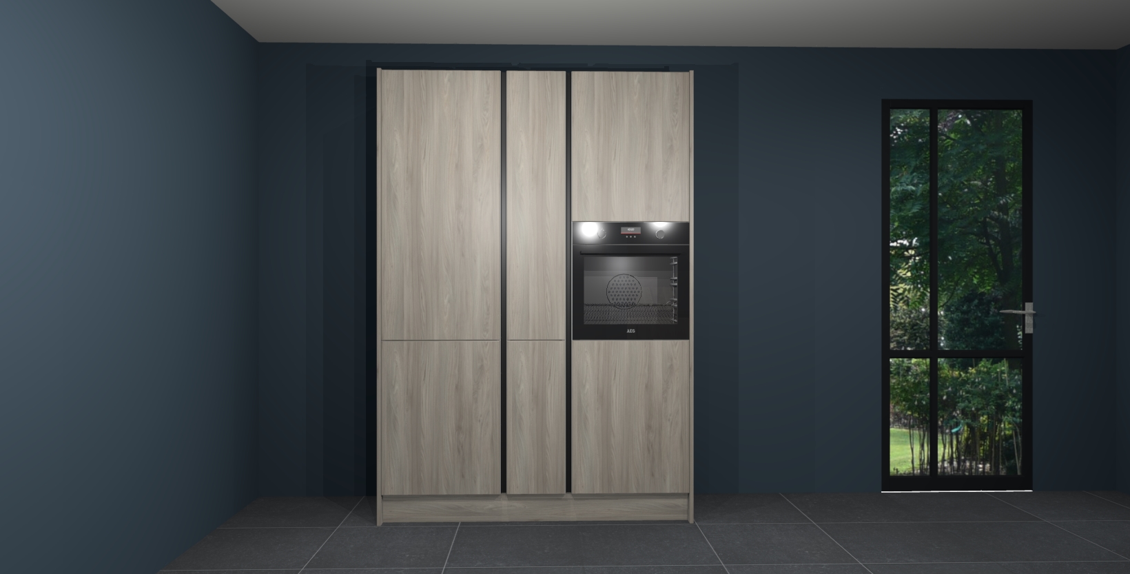 Met een modern, tijdloos design en ruime opslagruimte, zult u zich in no-time thuis voelen in uw nieuwe keuken. Uw leven wordt eenvoudiger met de soft-close deuren die voor het ultieme stille comfort zorgen - geen geluid dat u stoort terwijl u kookt. Ook is de keuken voorzien van 5 ingebouwde apparaten: een oven, inductie kookplaat, afzuigkap, vaatwasser en koelkast. Deze kunnen gemakkelijk na bestelling worden bijgewerkt naar AEG - waardoor uw luxe ervaring compleet is.