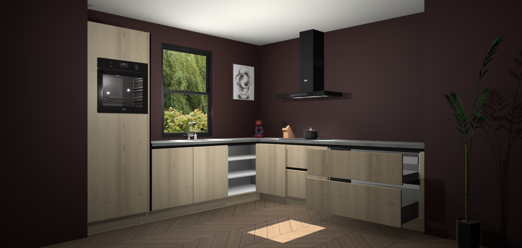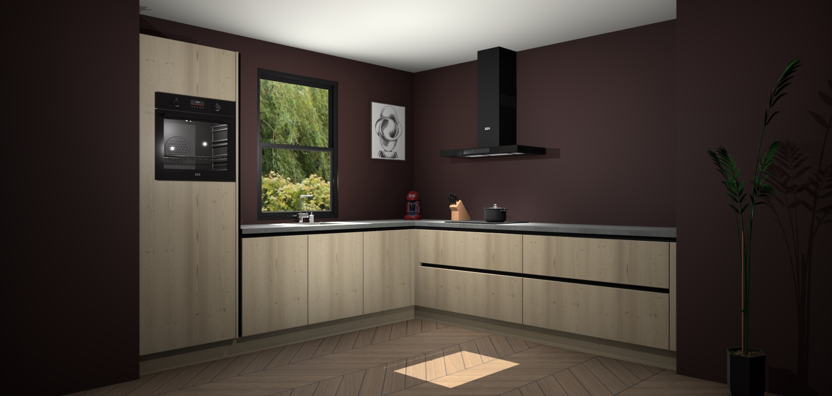 Welkom bij de vuren greeploze keuken Lublin. Deze prachtige keuken zal de komende jaren het middelpunt van de belangstelling in uw huis zijn. Uitgerust met vijf inbouwapparaten komt u nooit kookgereedschap tekort. Bovendien geeft de warme houtlook elke ruimte een uitnodigende en tijdloze uitstraling.