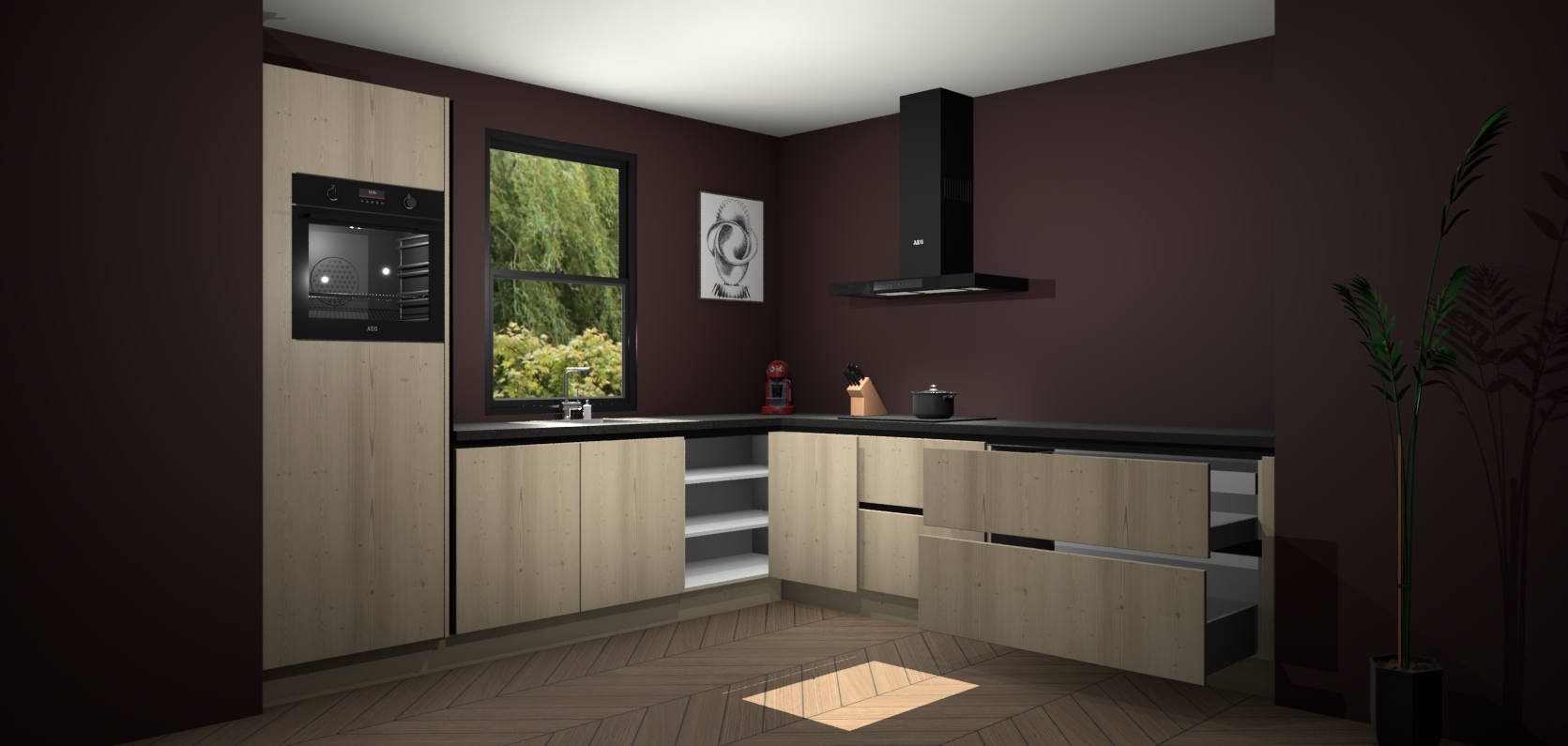 Welkom bij de vuren greeploze keuken Lublin. Deze prachtige keuken zal de komende jaren het middelpunt van de belangstelling in uw huis zijn. Uitgerust met vijf inbouwapparaten komt u nooit kookgereedschap tekort. Bovendien geeft de warme houtlook elke ruimte een uitnodigende en tijdloze uitstraling.