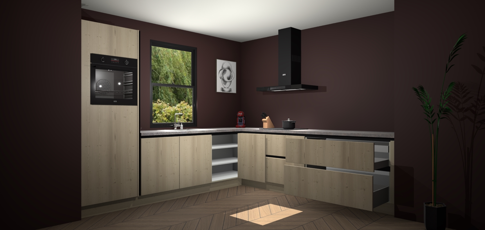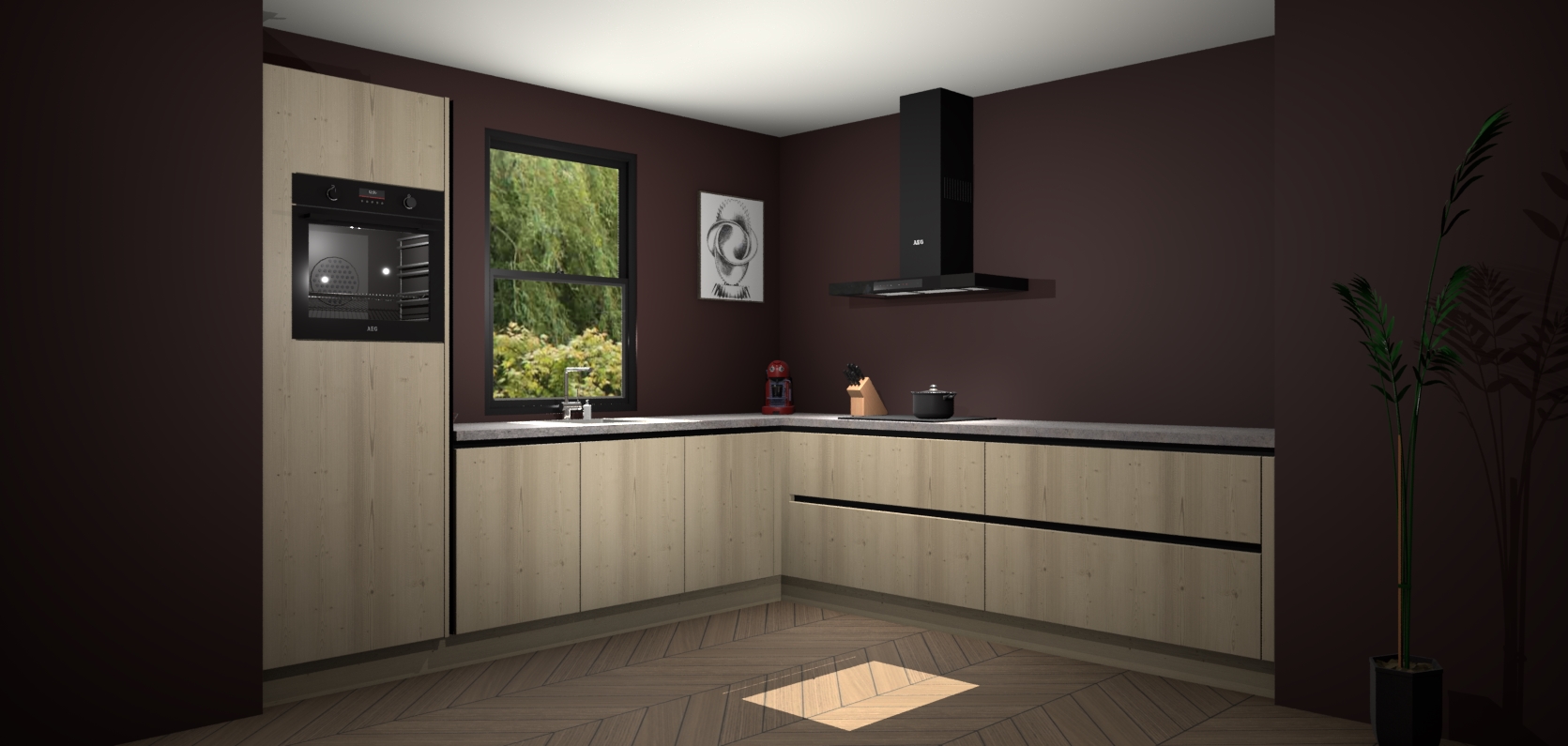 Welkom bij de vuren greeploze keuken Lublin. Deze prachtige keuken zal de komende jaren het middelpunt van de belangstelling in uw huis zijn. Uitgerust met vijf inbouwapparaten komt u nooit kookgereedschap tekort. Bovendien geeft de warme houtlook elke ruimte een uitnodigende en tijdloze uitstraling.