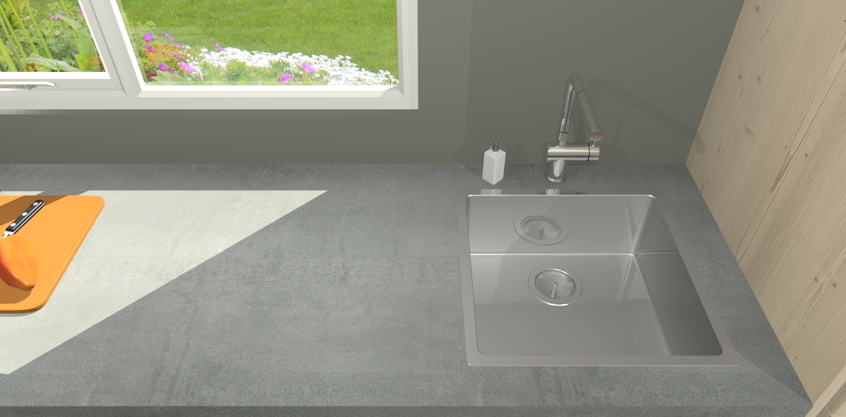 - De spoelbak is nog niet in gevreesd. Dit dient tijdens het werk gedaan te worden