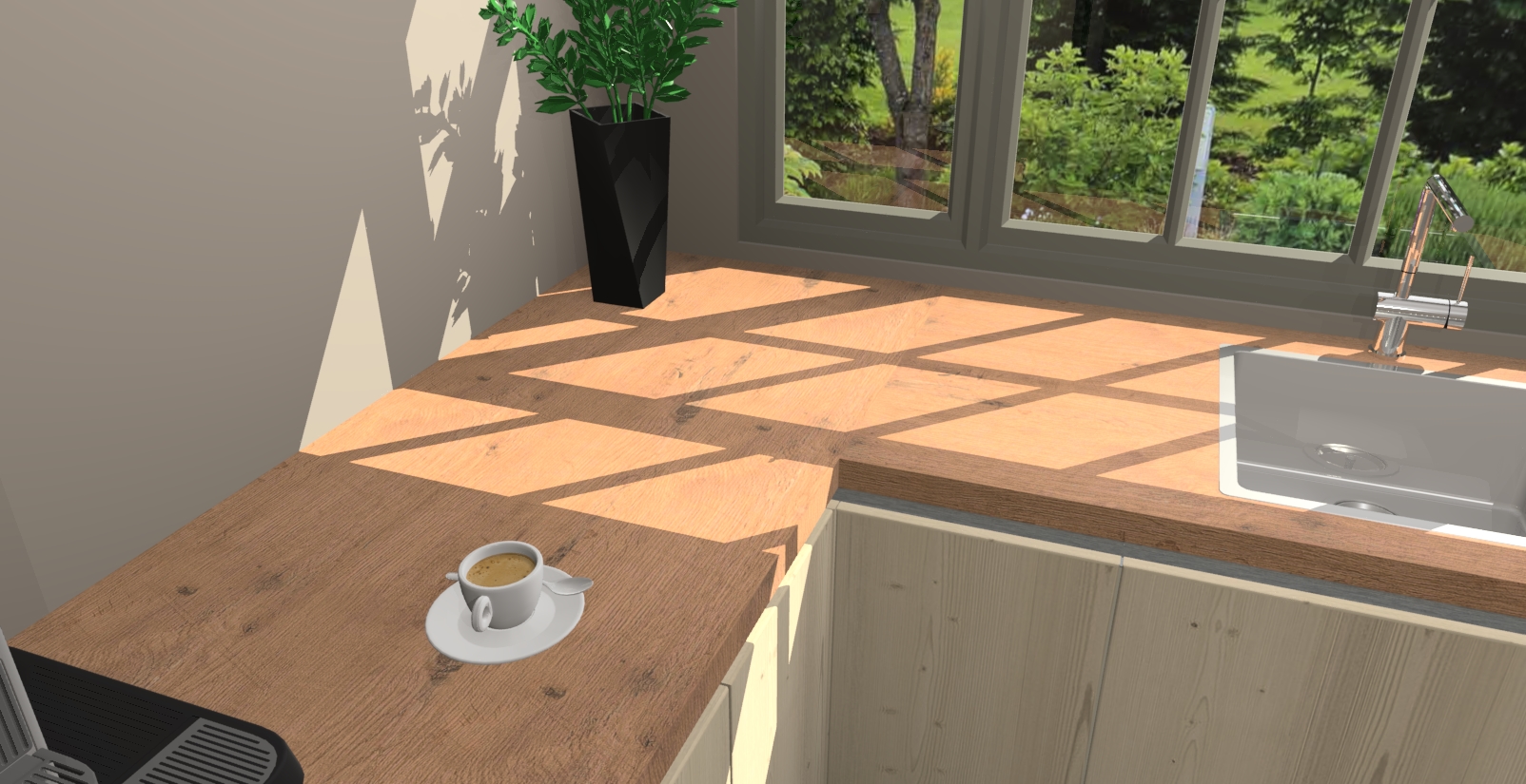 - Bij een hoekwerkblad zijn de hoeken in gevreesd en op maat gemaakt