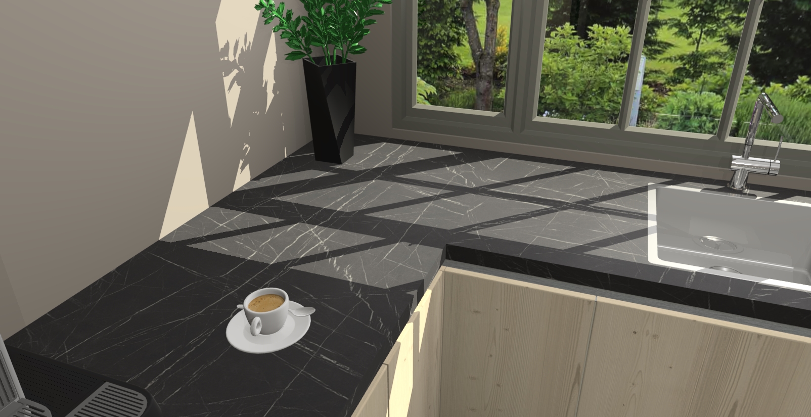 - Bij een hoekwerkblad zijn de hoeken in gevreesd en op maat gemaakt