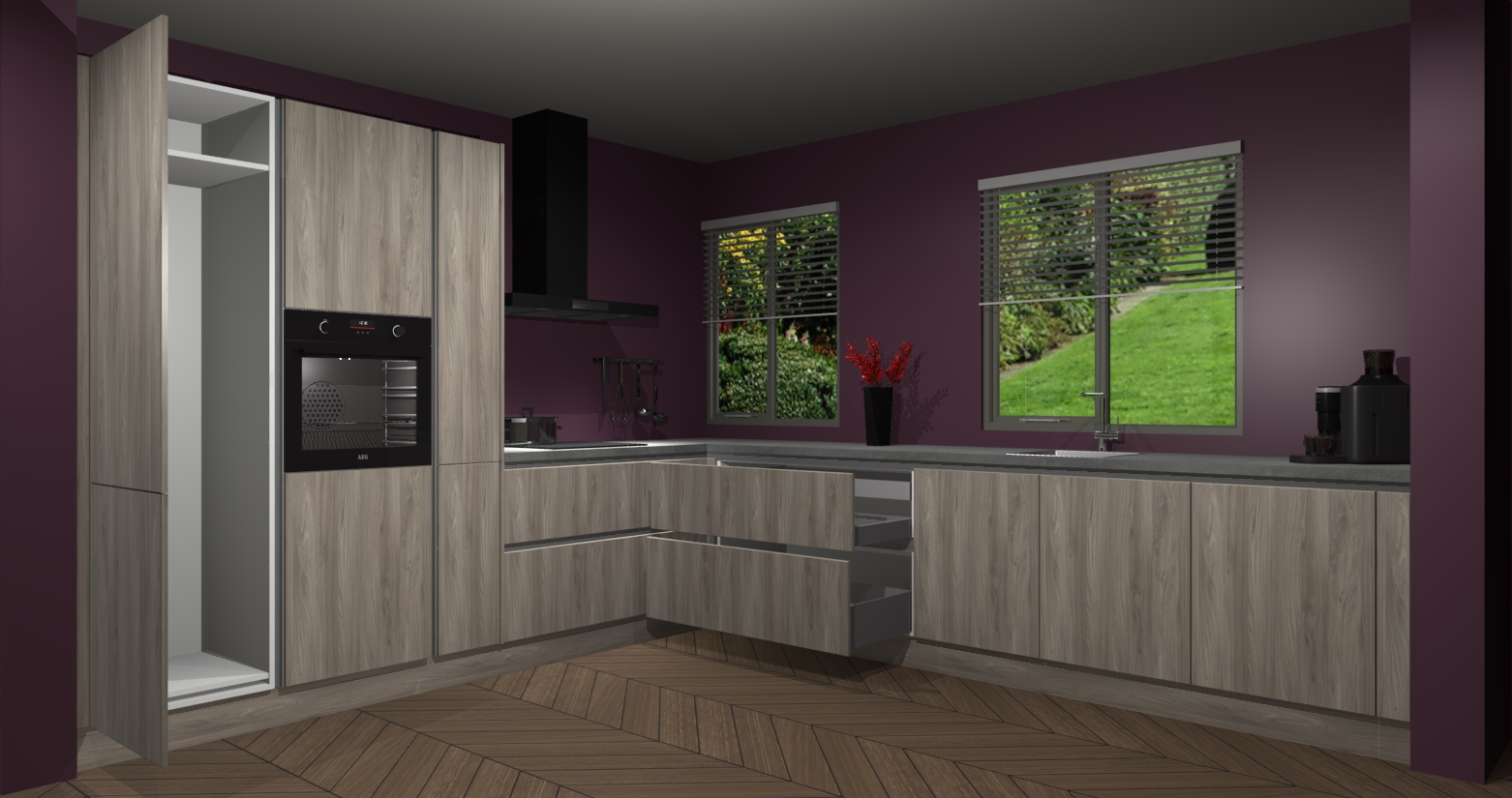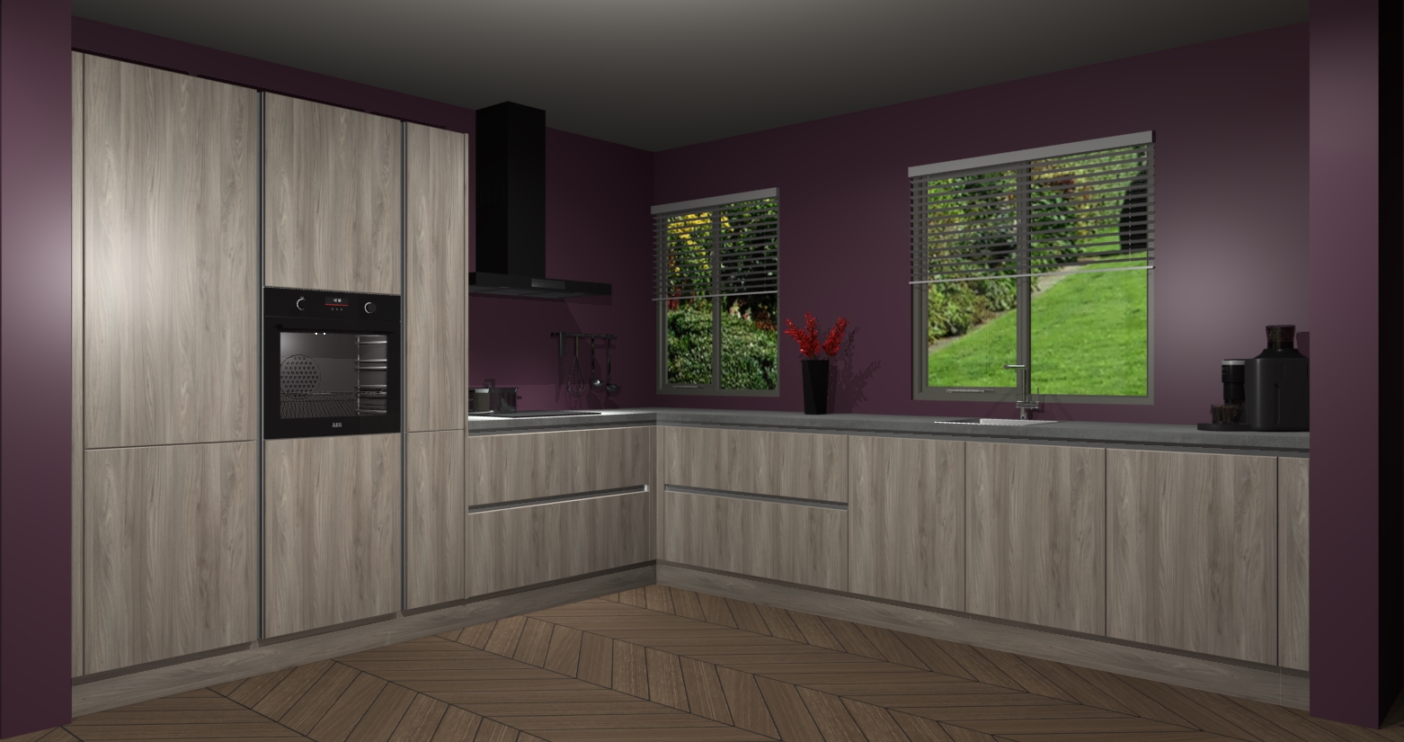 Welkom bij de Vuren keuken Palermo. Deze prachtige keuken zal de komende jaren het middelpunt van de belangstelling in uw huis zijn. Uitgerust met vijf inbouwapparaten komt u nooit kookgereedschap tekort. Bovendien geeft de warme houtlook elke ruimte een uitnodigende en tijdloze uitstraling.