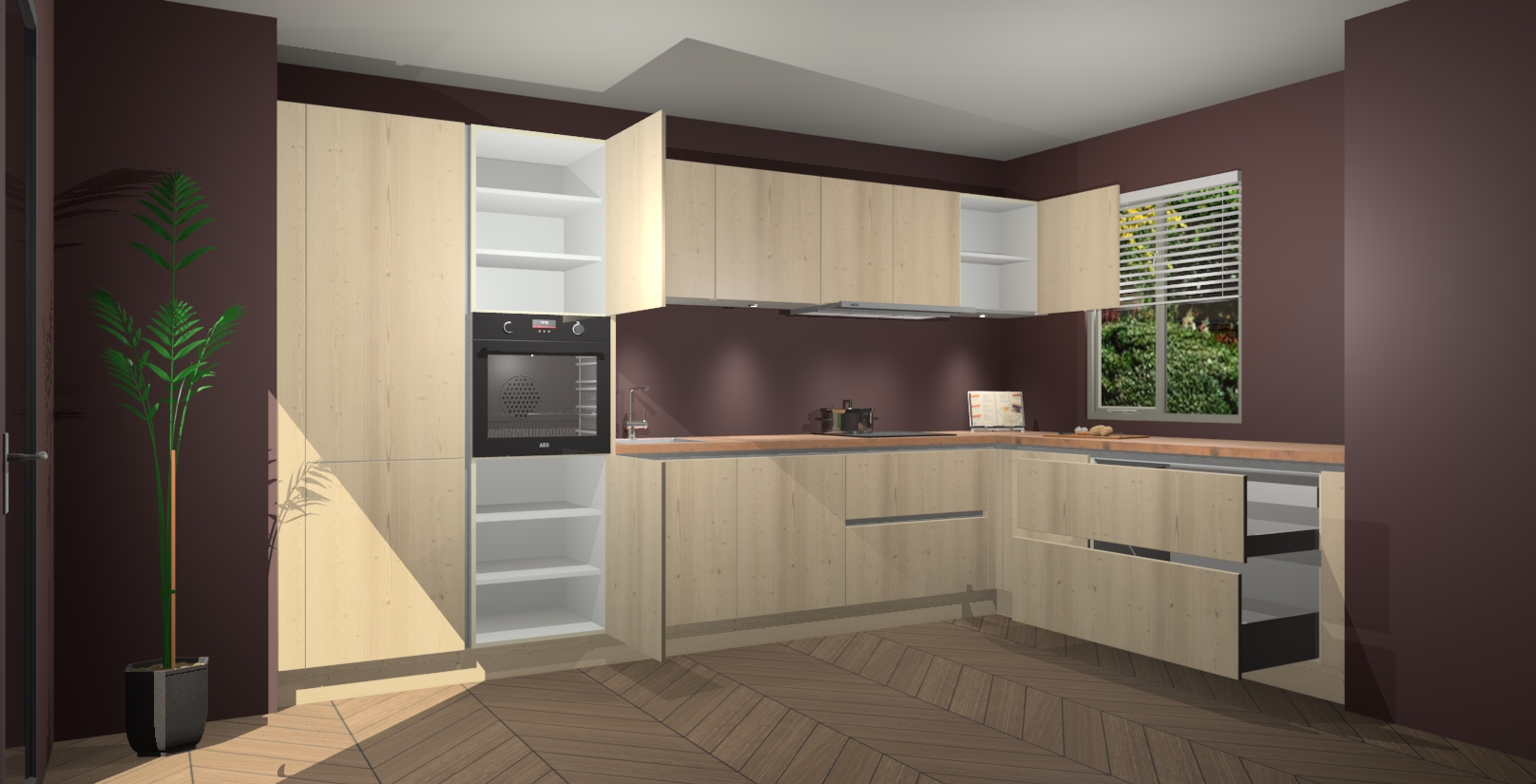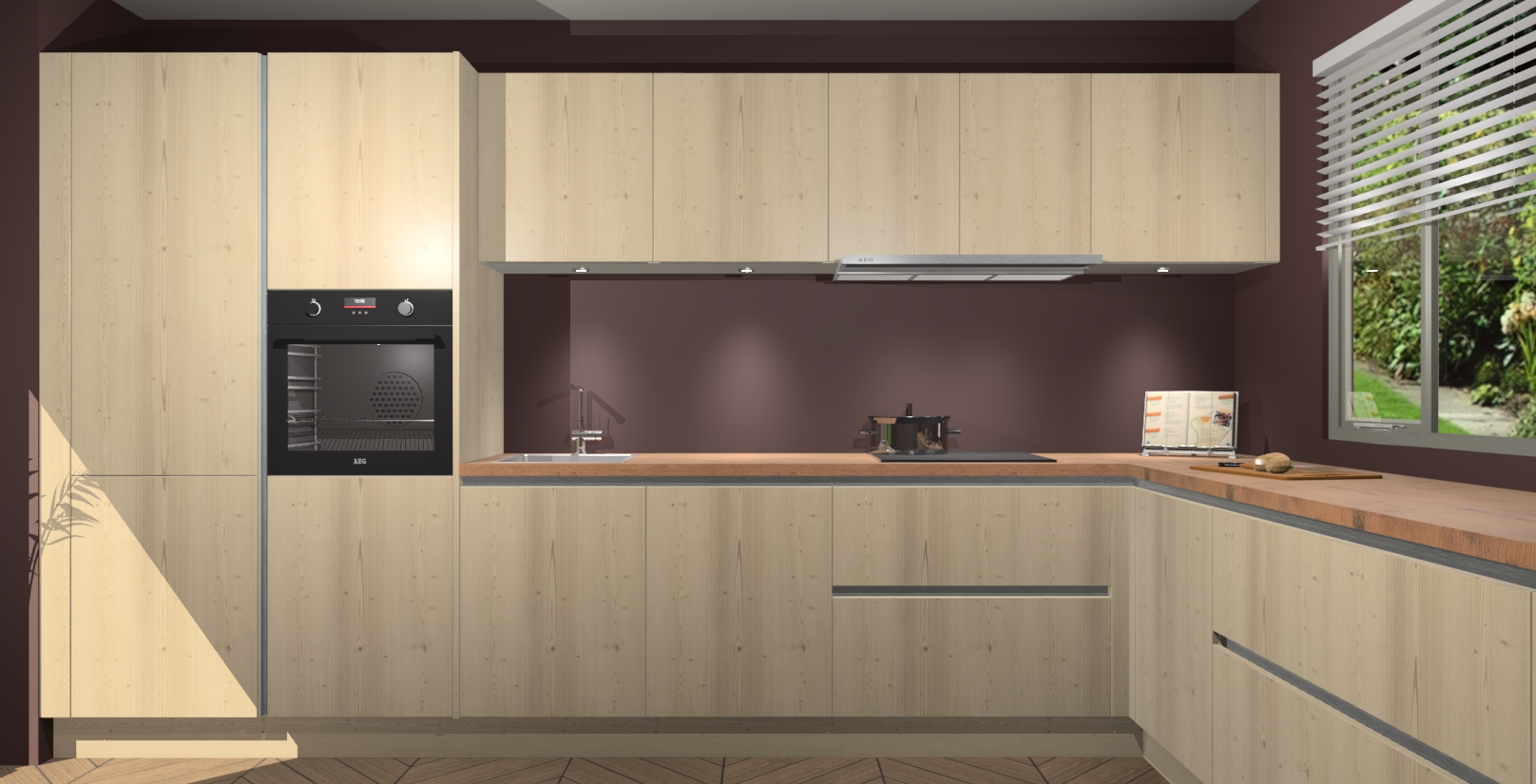 Verwelkom de natuurlijke warmte van de Vuren greeploze keuken Petten in uw huis. Deze prachtige hoekkeuken met zijn moderne design en warme houten look geeft u meer dan genoeg opbergruimte om uw comfortabel te voelen in uw keuken. Geniet van soft-close deuren die al uw gasten het gevoel zullen geven dat ze zich in een luxueuze ruimte bevinden.