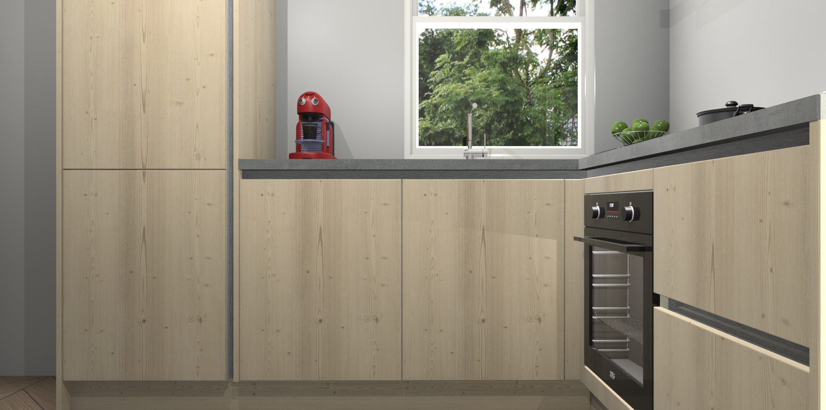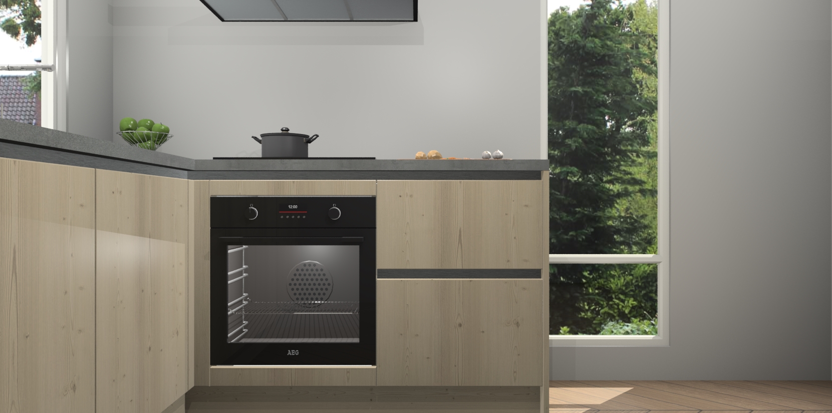 De Vuren greeploze keuken Phuket heeft alles wat u maar kunt wensen. Niet alleen zijn er softclose deuren, maar ook 5 ingebouwde apparaten: een oven, inductiekookplaat, afzuigkap, vaatwasser en koelkast - waarbij u later gemakkelijk naar het AEG merk, van inductiekookplaat naar kookplaat met geïntegreerde afzuiging of van oven naar combimagnetron kunt upgraden. Dat alles tegen een vast laag tarief! Bovendien geeft de Vuren greeploze keuken Phuket supersnelle levering van 7 weken. Echt iets voor u als u er niet op wilt wachten om het resultaat te zien in eigen keuken!
