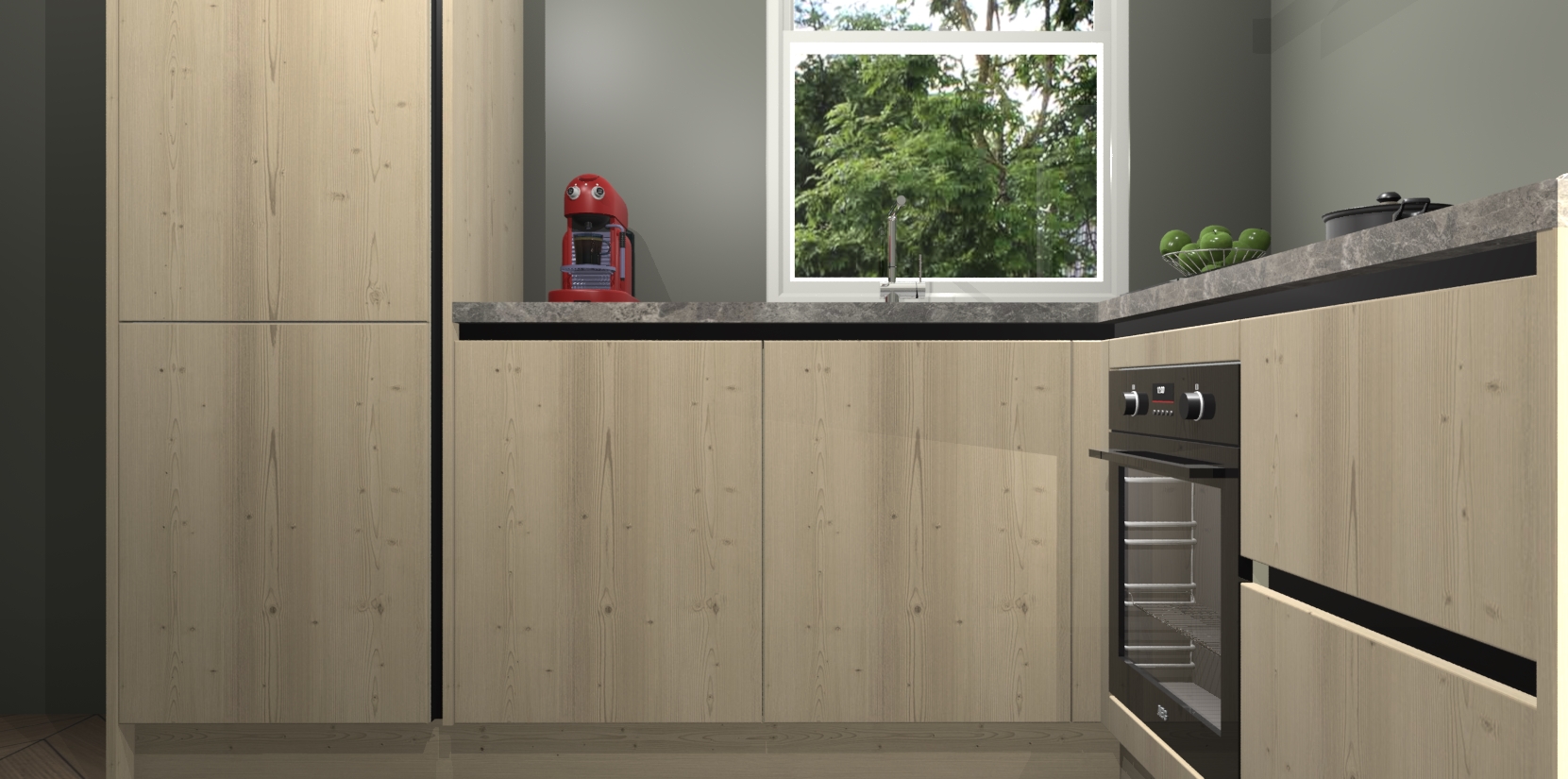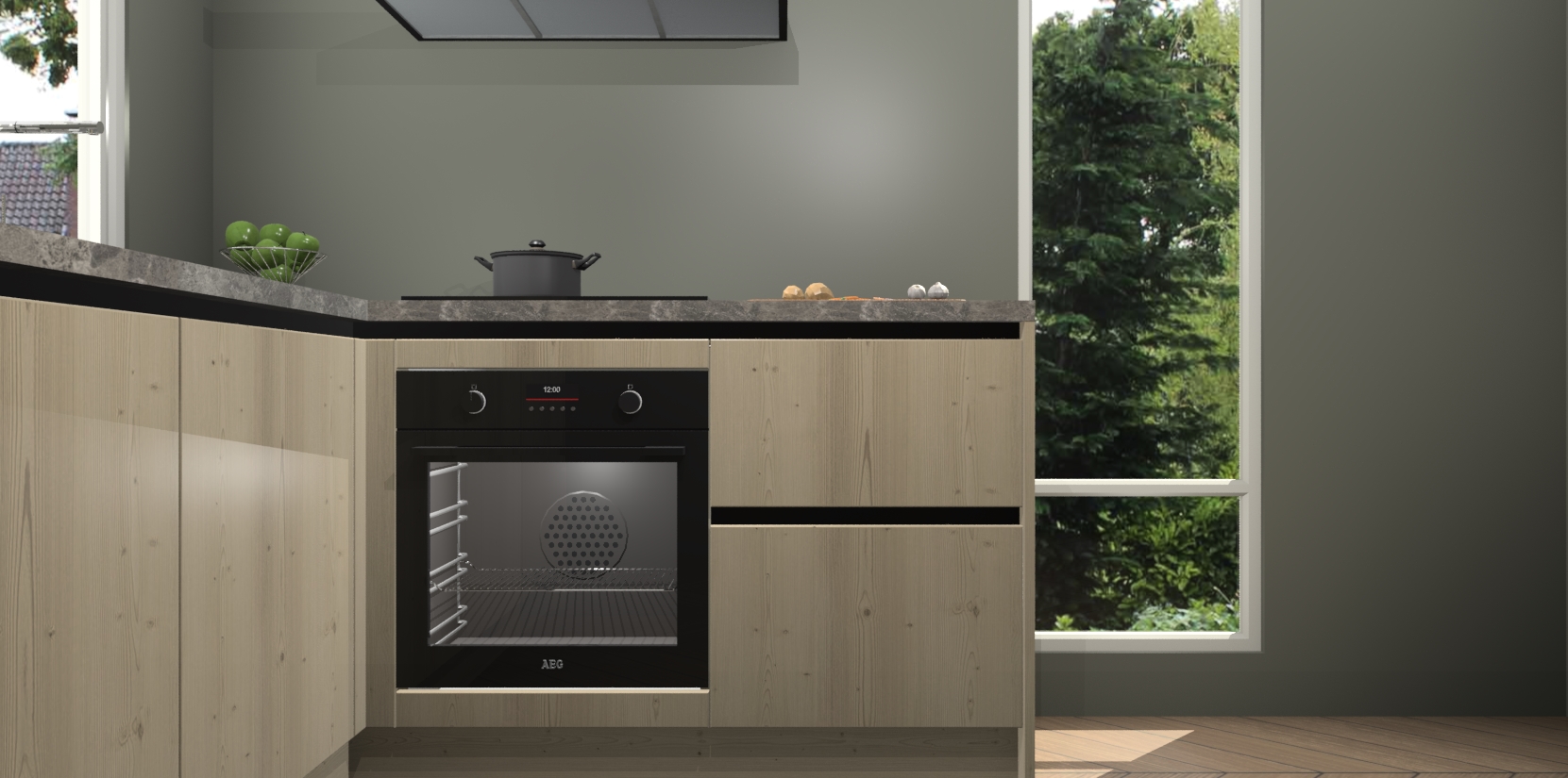 De Vuren greeploze keuken Phuket heeft alles wat u maar kunt wensen. Niet alleen zijn er softclose deuren, maar ook 5 ingebouwde apparaten: een oven, inductiekookplaat, afzuigkap, vaatwasser en koelkast - waarbij u later gemakkelijk naar het AEG merk, van inductiekookplaat naar kookplaat met geïntegreerde afzuiging of van oven naar combimagnetron kunt upgraden. Dat alles tegen een vast laag tarief! Bovendien geeft de Vuren greeploze keuken Phuket supersnelle levering van 7 weken. Echt iets voor u als u er niet op wilt wachten om het resultaat te zien in eigen keuken!