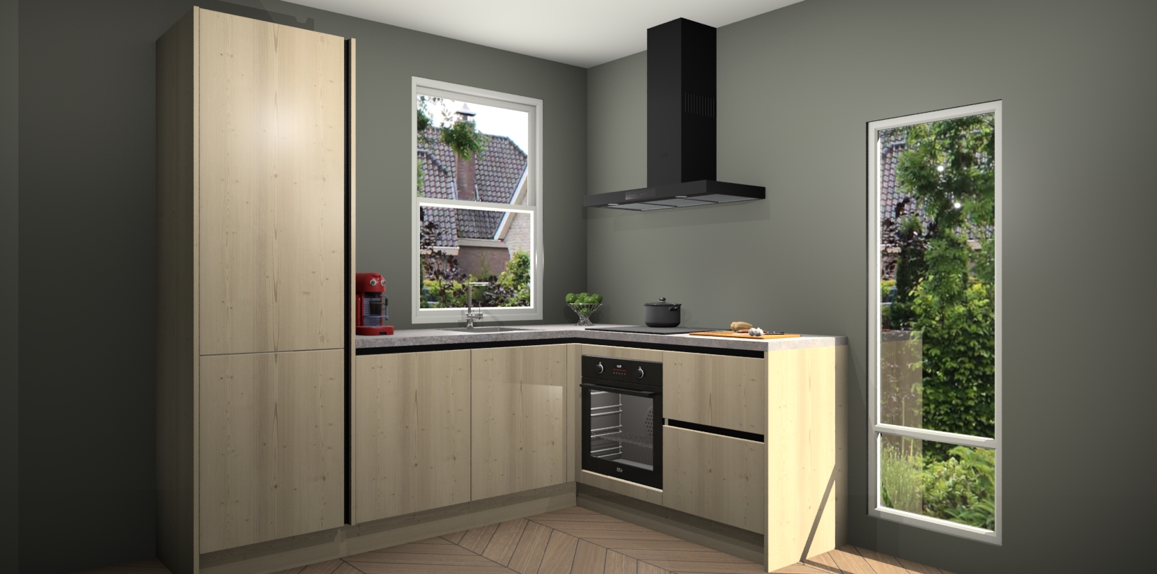 De prachtige Vuren greeploze keuken Phuket is de perfecte keuze als u op zoek bent naar een moderne hoekkeuken met alle luxe en comfort die u kunt verwachten! De uitstraling in het houtlook-design draagt bij aan de warme sfeer die u nu al voelt wanneer u er naar kijkt. Heeft u genoeg van ouderwetse keukens? Probeer dan direct deze moderne, mooie hoekkeukens en laat iedereen verbluft achter!